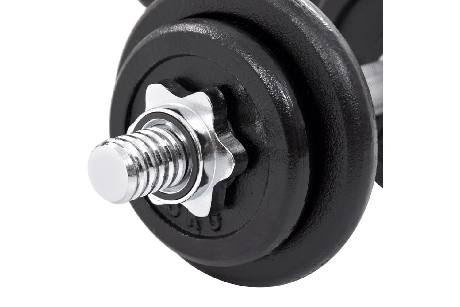 The structure of the handles provides maximum grip so the dumbbell bar lies firmly in your hands. Additionally, this dumbbell has star-shaped screw collars in order to keep the weights in place. This set can be easily combined with our weight benches or other dumbbell sets.