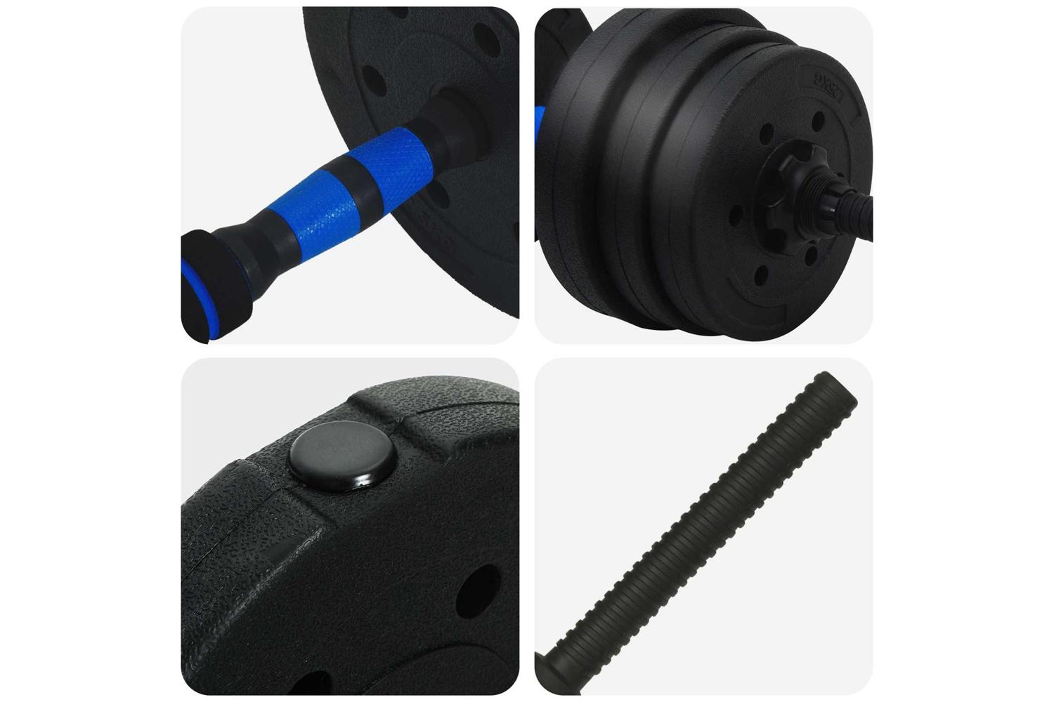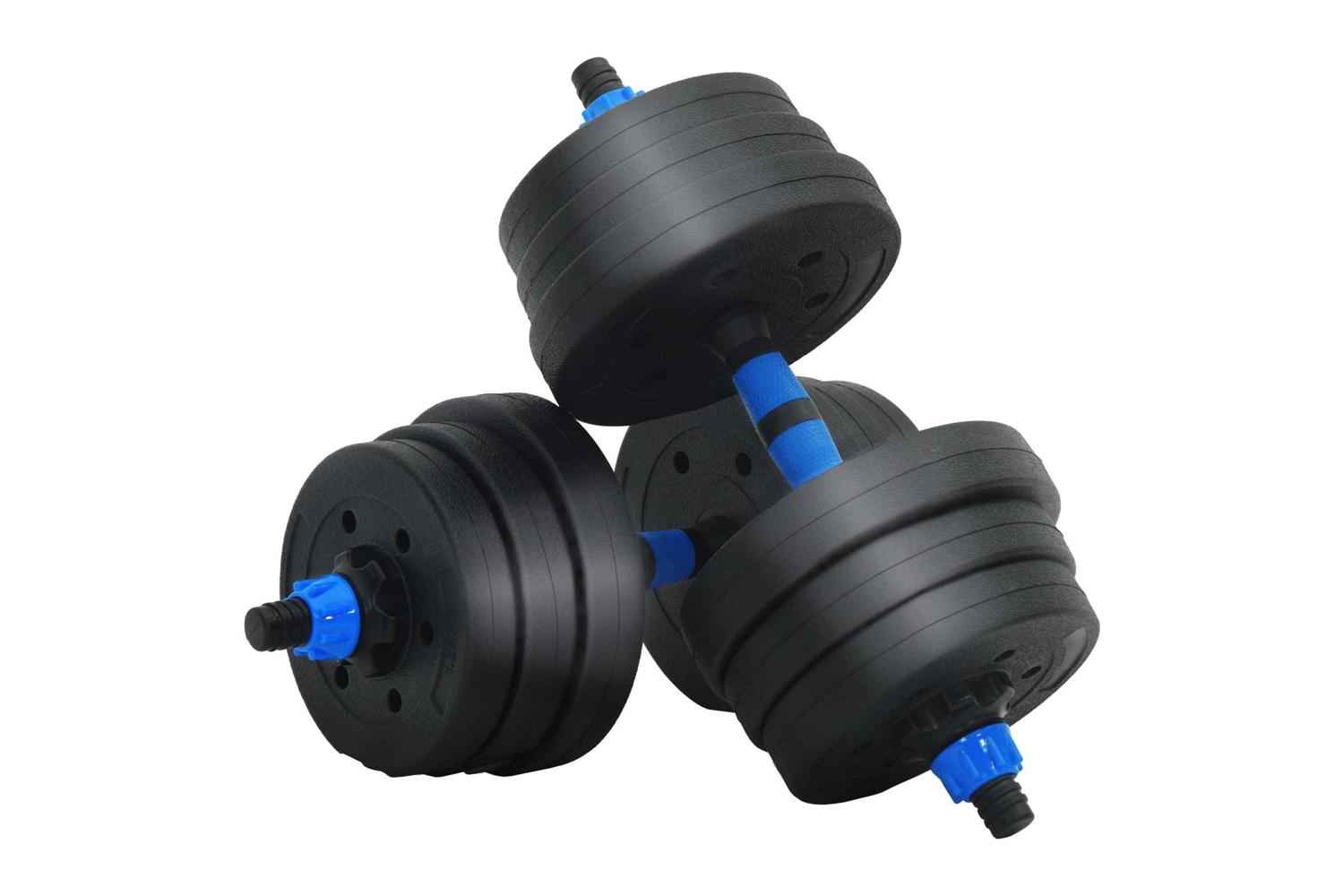 - 4 x Dumbbell plate (1.25 kg): Ø17 x 3 cm (Diameter x T); 4 x Dumbbell plate (1.5 kg): Ø18 x 3.3 cm (Diameter x T); 4 x Dumbbell plate (2 kg): Ø19 x 3.8 cm (Diameter x T); 4 x Dumbbell plate (2.5 kg): Ø21 x 3.8 cm (Diameter x T); 2 x Dumbbell bars (0.27 kg): Ø2.5 x 51 cm (Diameter x L); 1 x Barbell connection pipe: Ø4.15 x 39.5 cm (Diameter x L); 2 x Kettlebell grip handle: 19.5 x 14 cm (L x H); 2 x Kettlebell base: Ø9.35 x 22 cm (Diameter x H); 2 x Small star locks