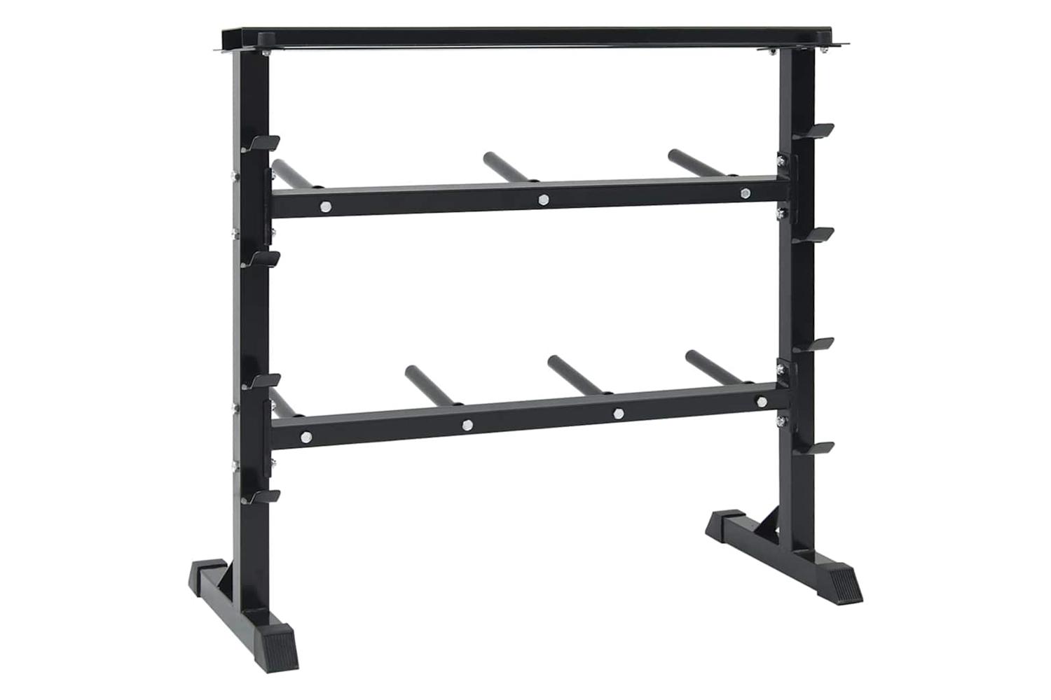 - Features /Function /Design: Its modern design and practical functionality set this rack apart. With its powder-coated finish, the surface is reliably protected against the rigors of frequent use, making it ideal for any home workout regime. Additionally, its compact design allows placement flexibility without compromising floor space, offering a blend of style and functionality.