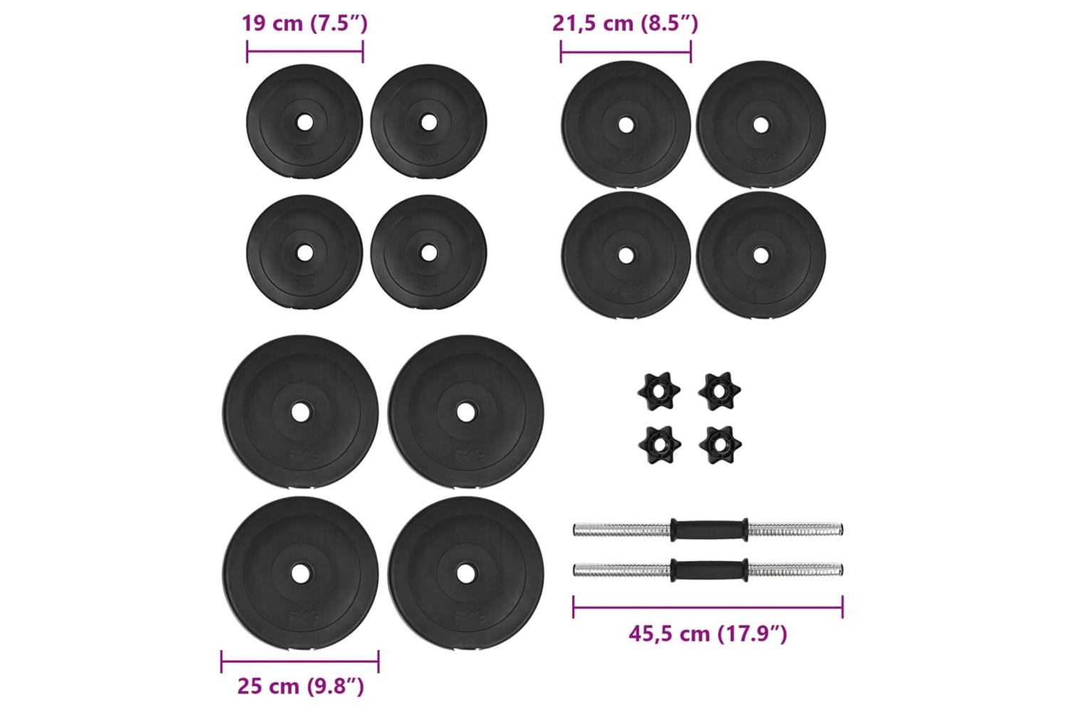 - Dumbbell bar dimensions: 2.5 x 45.5 cm (Diameter x L)