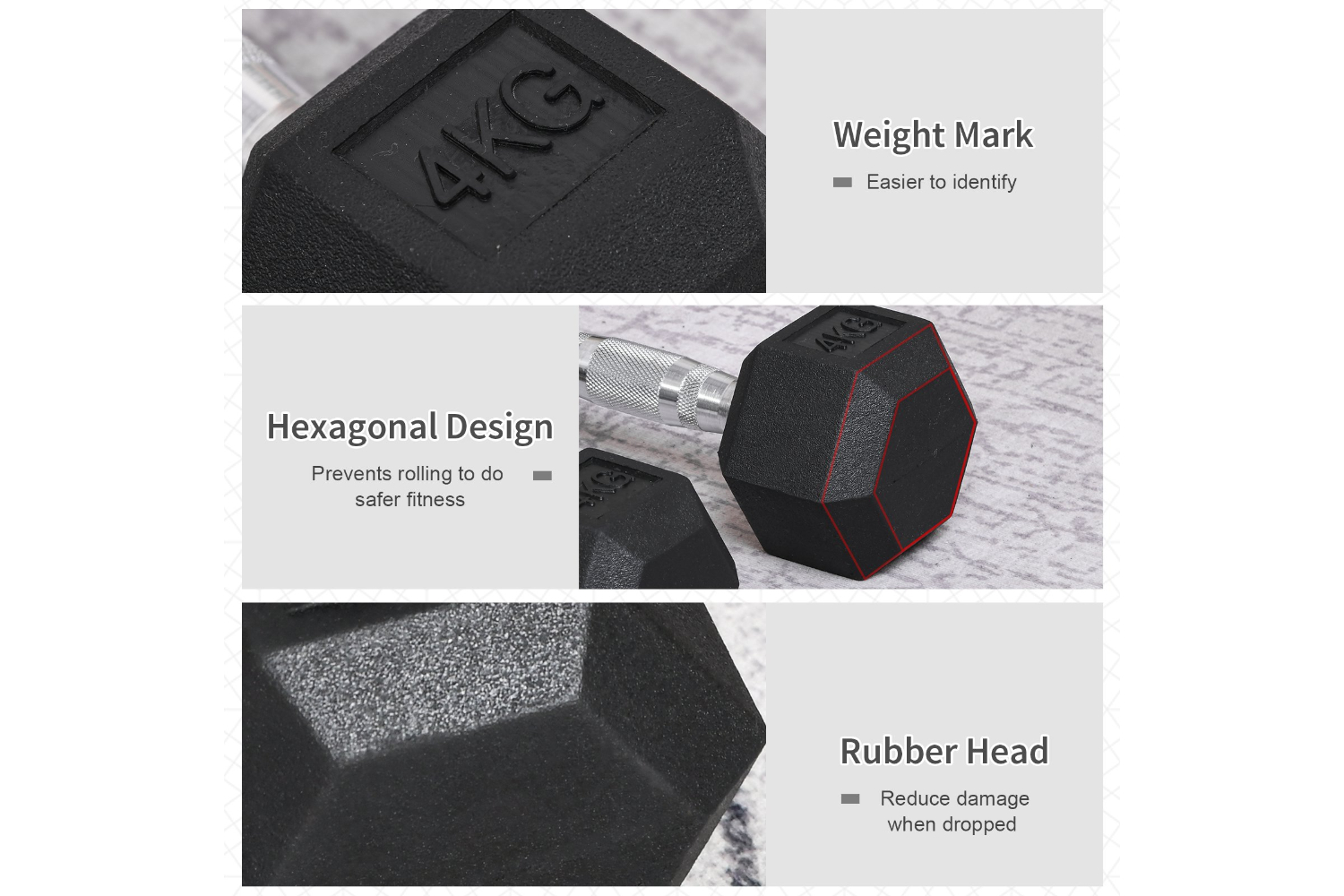 Homcom A91-015V01 Rubber Dumbbell Kit | 2 Pieces | Black