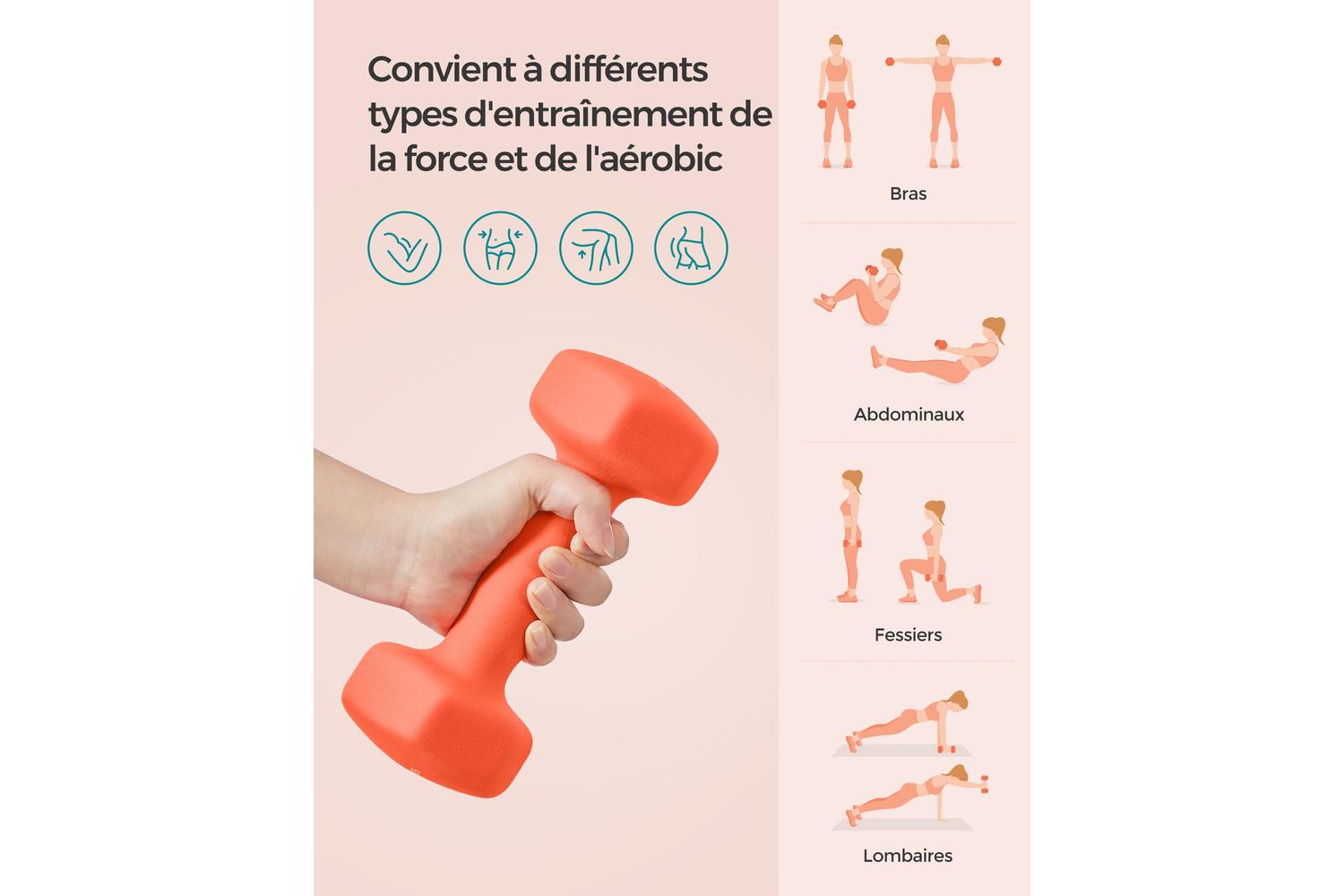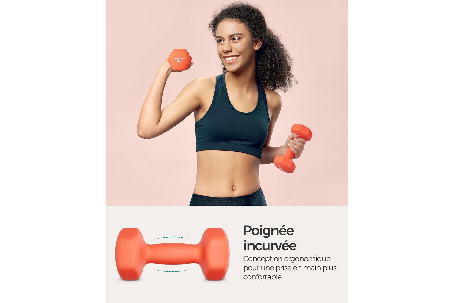 Available in attractive Papaya Orange color, SONGMICS offers a range of dumbbells in distinct weights and vibrant colors. Choose the perfect balance for your strength levels and fitness goals. Don't be confined by stock standard black and greys, let your fitness setup standout. Brimmed with great usability and aesthetics, it's perfect for your daily aerobic activities or specific workouts like Crossfit, P90x, and Insanity.