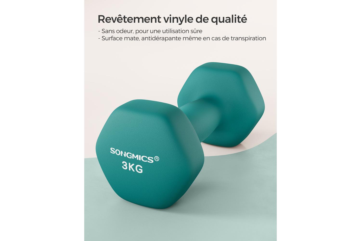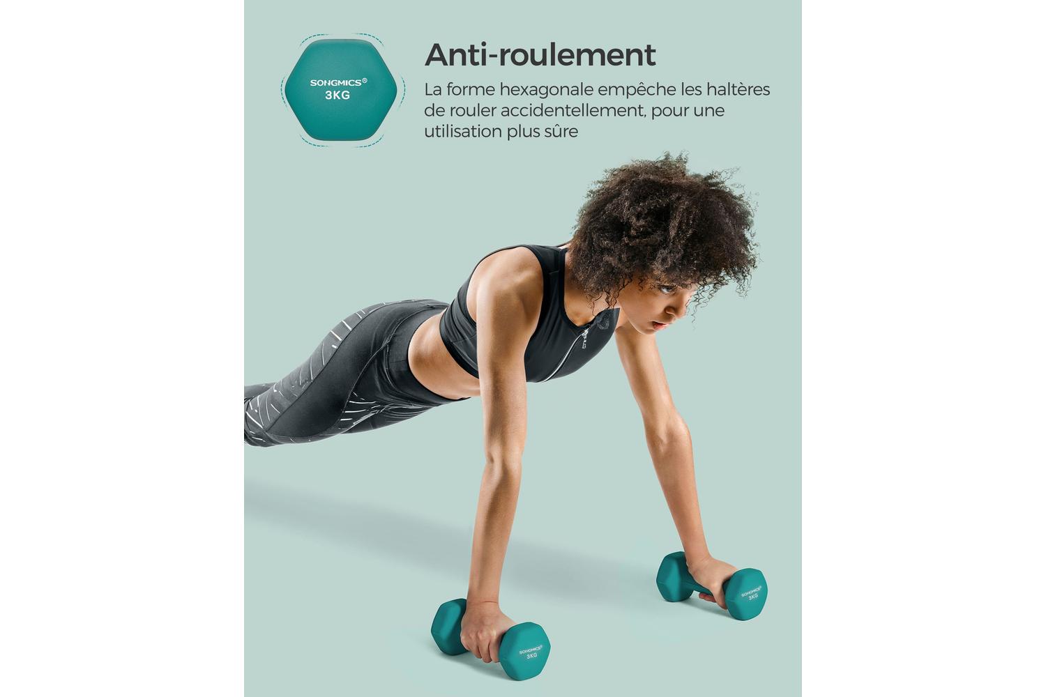 One of the standout features of this dumbbell is its hexagonal shape, which adds another layer of practicality. This shape prevents the dumbbell from rolling when not in use, allowing you to place the dumbbell safely anywhere around your home. This product stems from SONGMICS's broad range of free weights, available in various weights and colors. Hence, you can choose the most suitable option based on your fitness level and strength needs.
