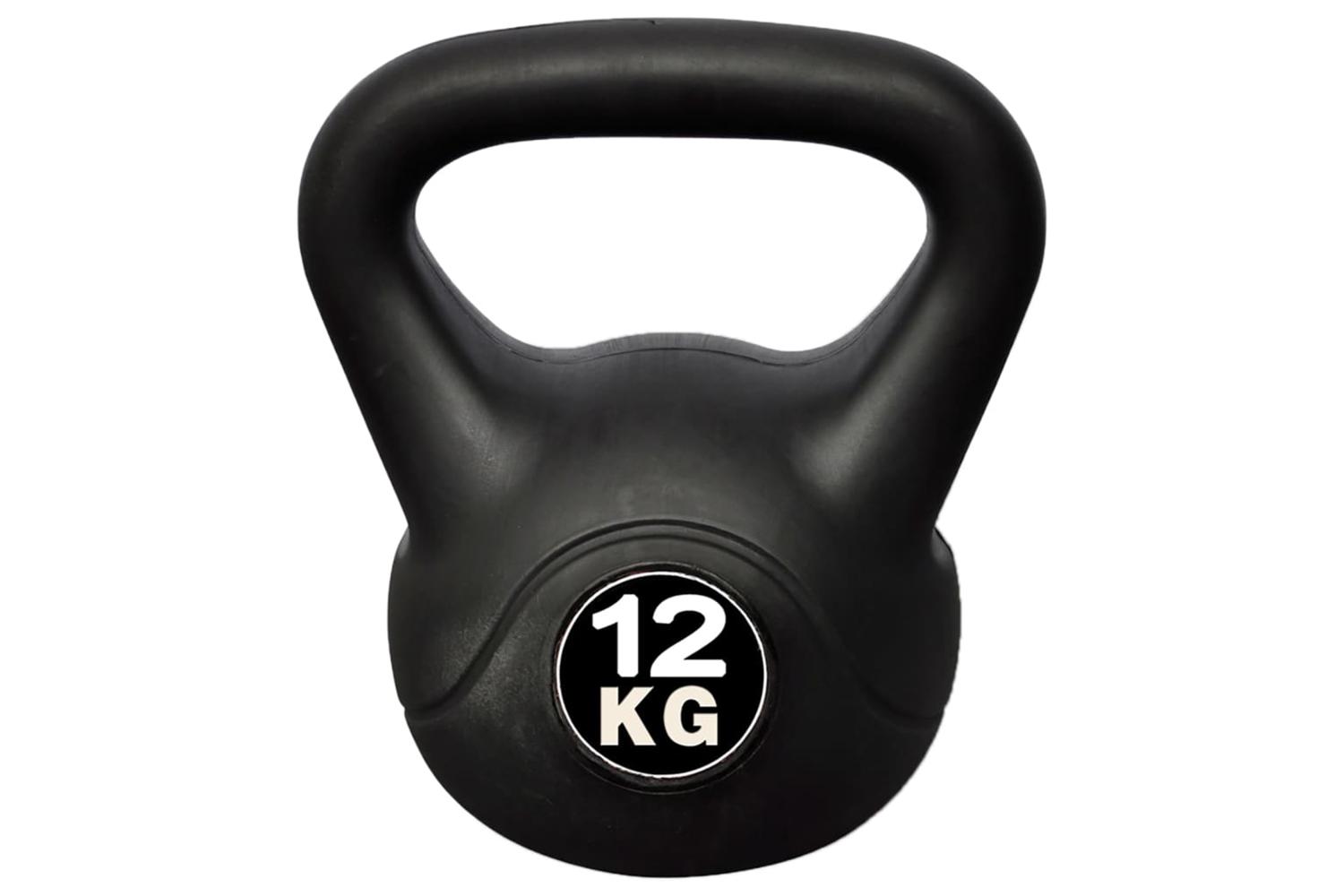 This kettle bell is made of plastic with a compact interior. It has a massive and professional construction. This kettle bell weighs 12 kg. Thanks to the material it doesn’t damage the ground during your exercise.
