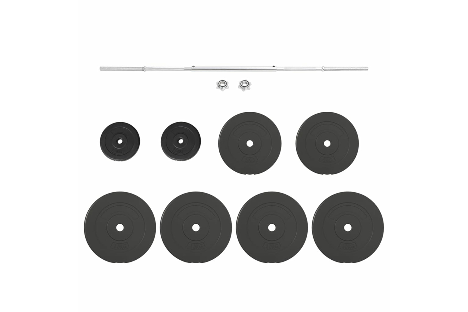 - Plate weight: 4 x 10 kg, 2 x 5 kg, 2 x 2 kg