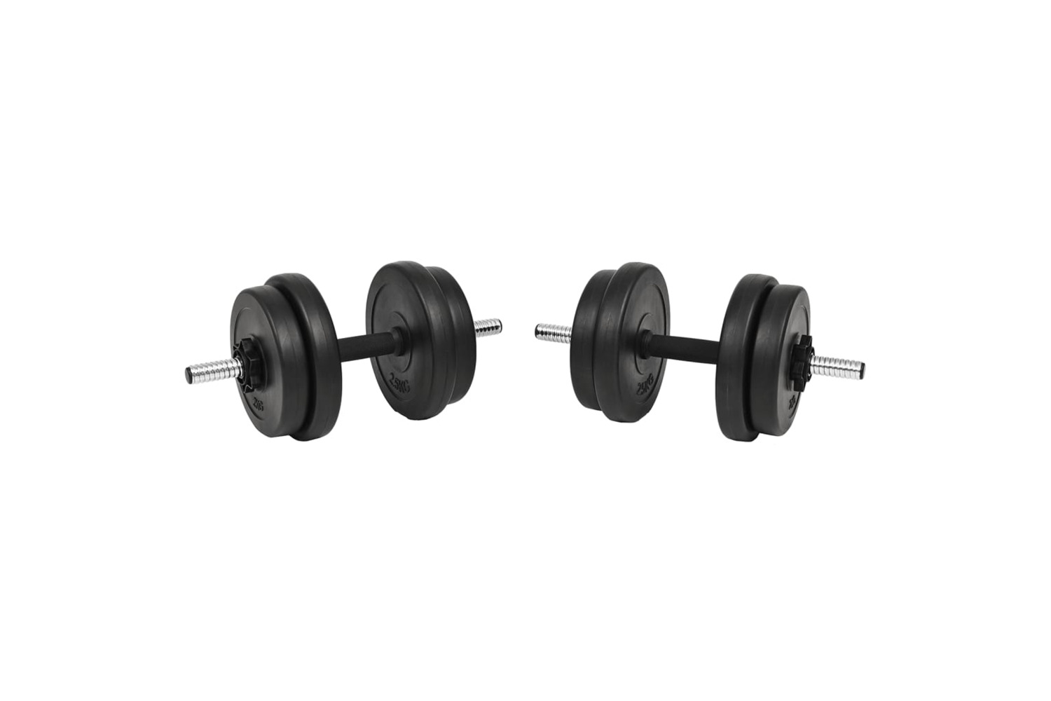 These weight plates are made of cement covered in robust plastic and they can easily be secured onto the bars with the included spinlock collars. The weight is clearly stamped on each plate for quick and easy identification. The dumbbell bars have non-slip plastic grip.