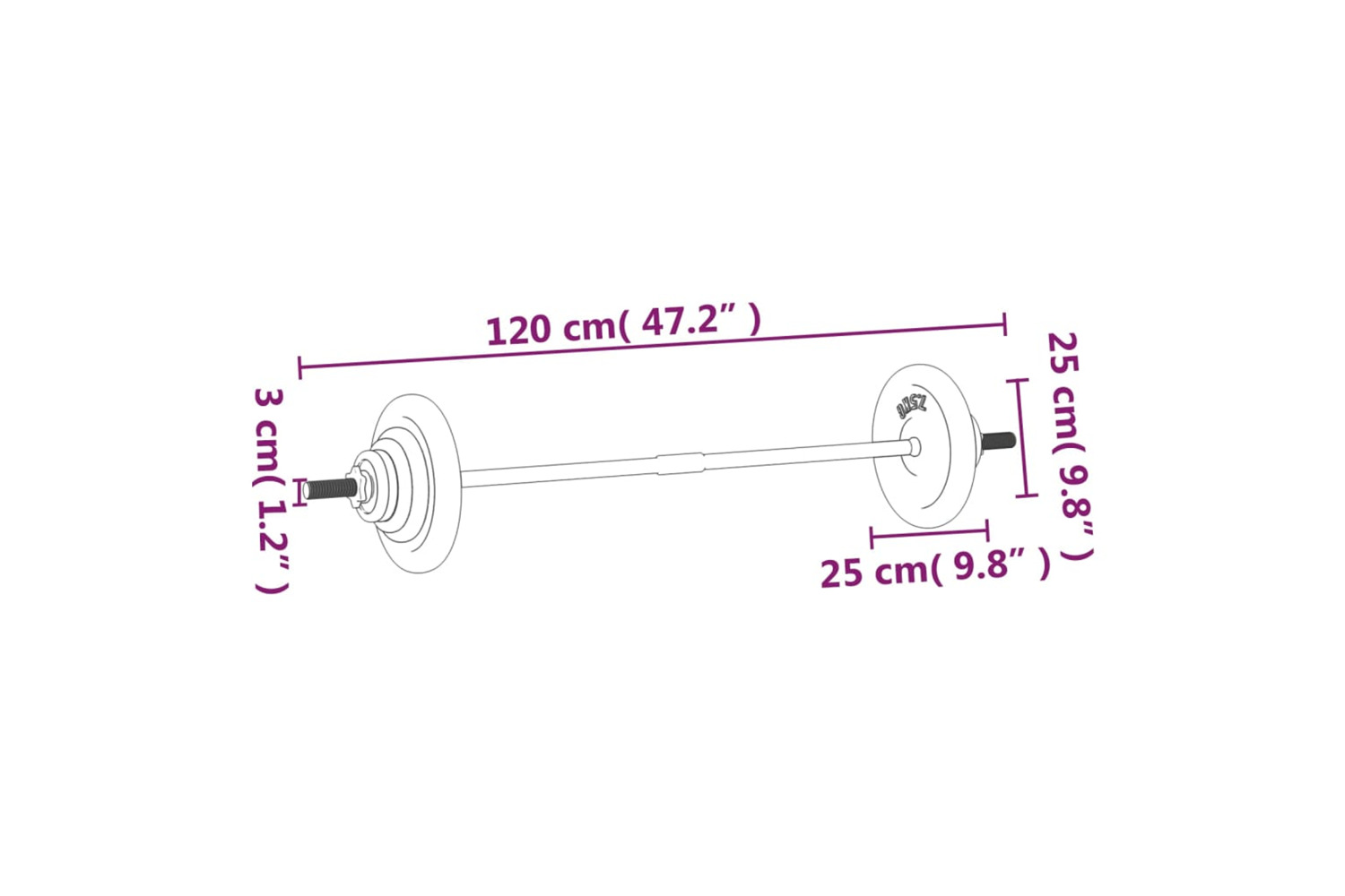- Barbell size: 3 x 120 cm (Diameter x L)