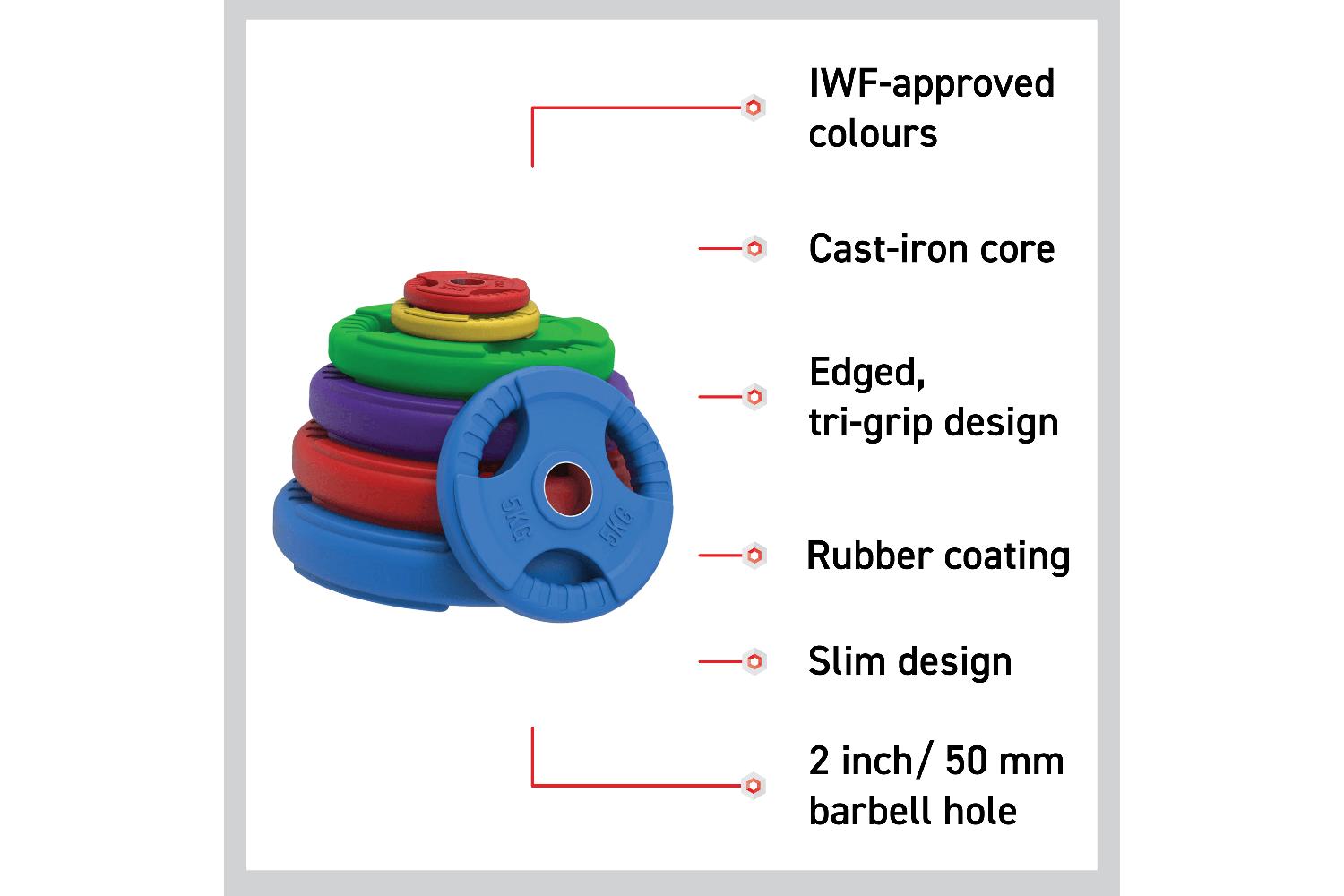 * 1 x set of MONSTERSHOP - Olympic Tri-Grip Rubber Weight Plates