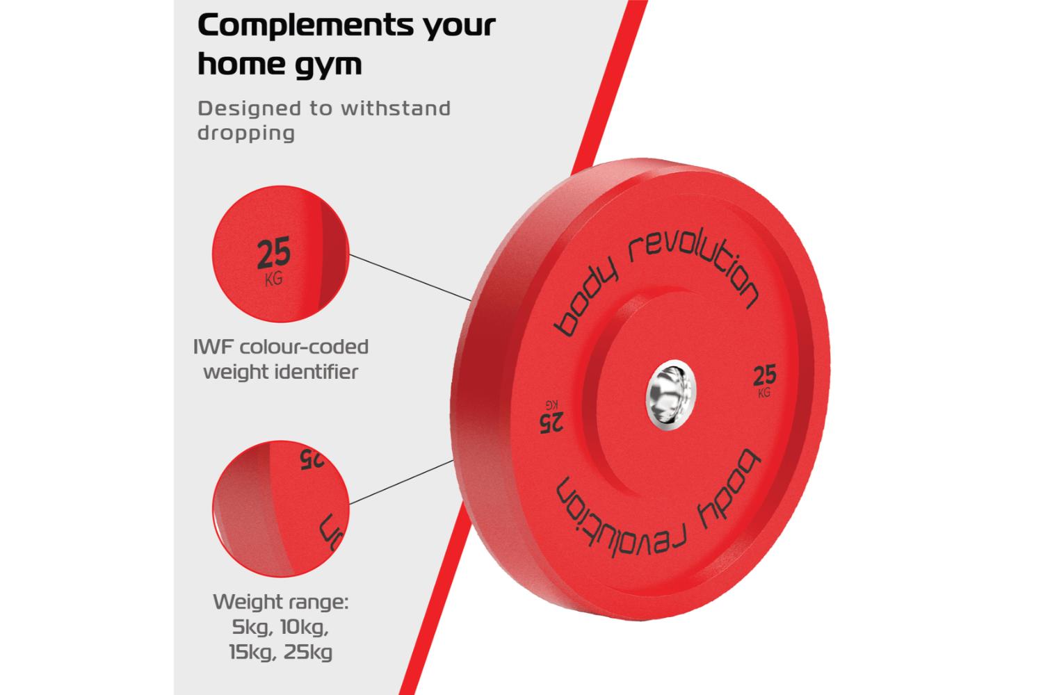 Rediscover the joy of home workouts and fitness with the MONSTERSHOP 30123 - Body Revolution Olympic Bumper Plates. Loaded with features to appeal to fitness enthusiasts of any level, these revolutionized bumper plates provide a dynamic edge to your training. Crafted from premium high-density rubber, each disc is designed both compact and durable, making them perfect for serious strength and weight training.