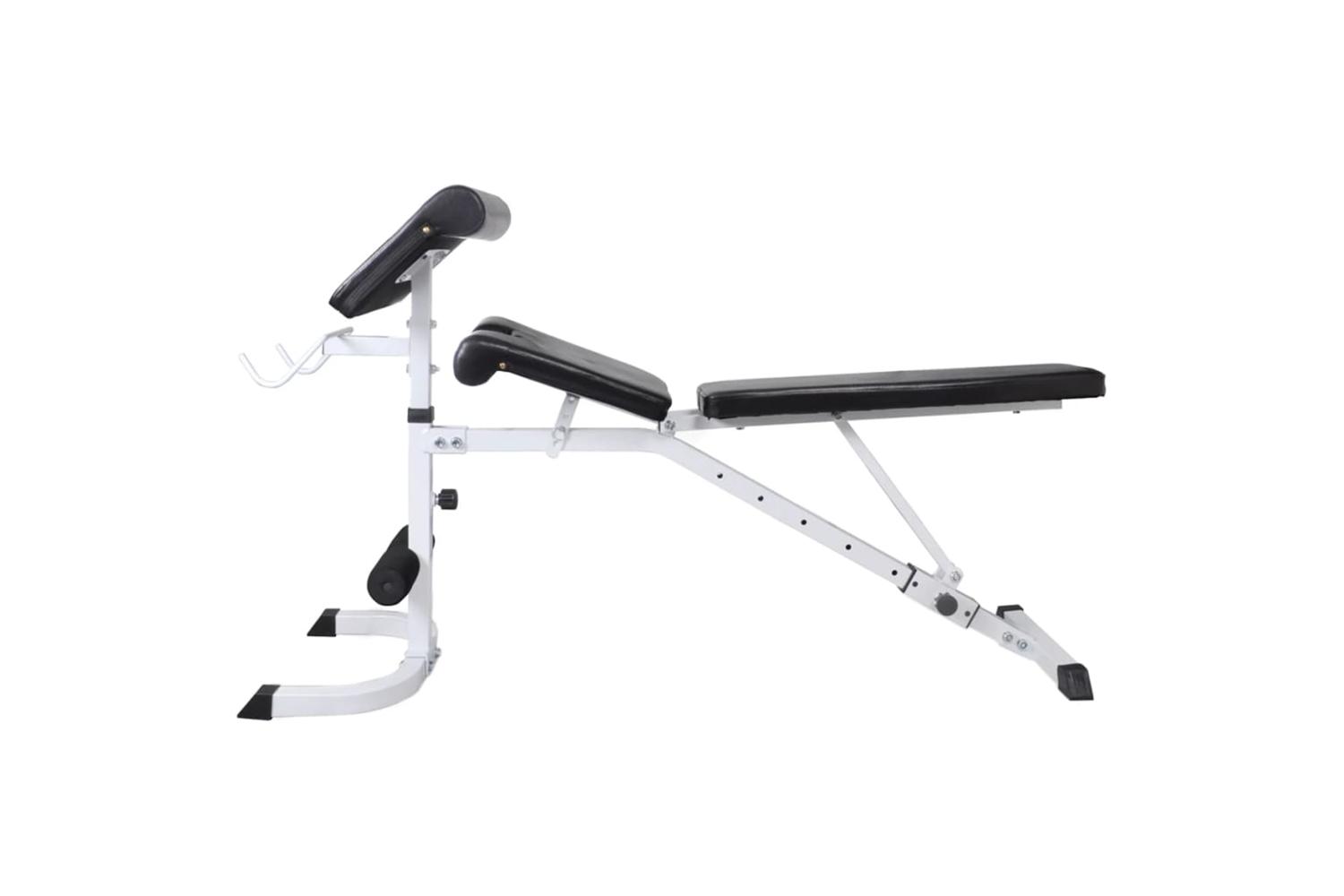 This workout bench provides a wide range of exercise options. The backrest will strengthen your back muscles. Thanks to the arm curl cushion, arms can be exercised. The wide range of workout combinations and exercises allows for an effective, total body workout, while the adjustable levels enable the workout to be adapted to suit your specific needs. The sturdy steel construction of the bench ensures your safety during the exercises. The durable cotton-padded cushion will offer you the utmost comfort.