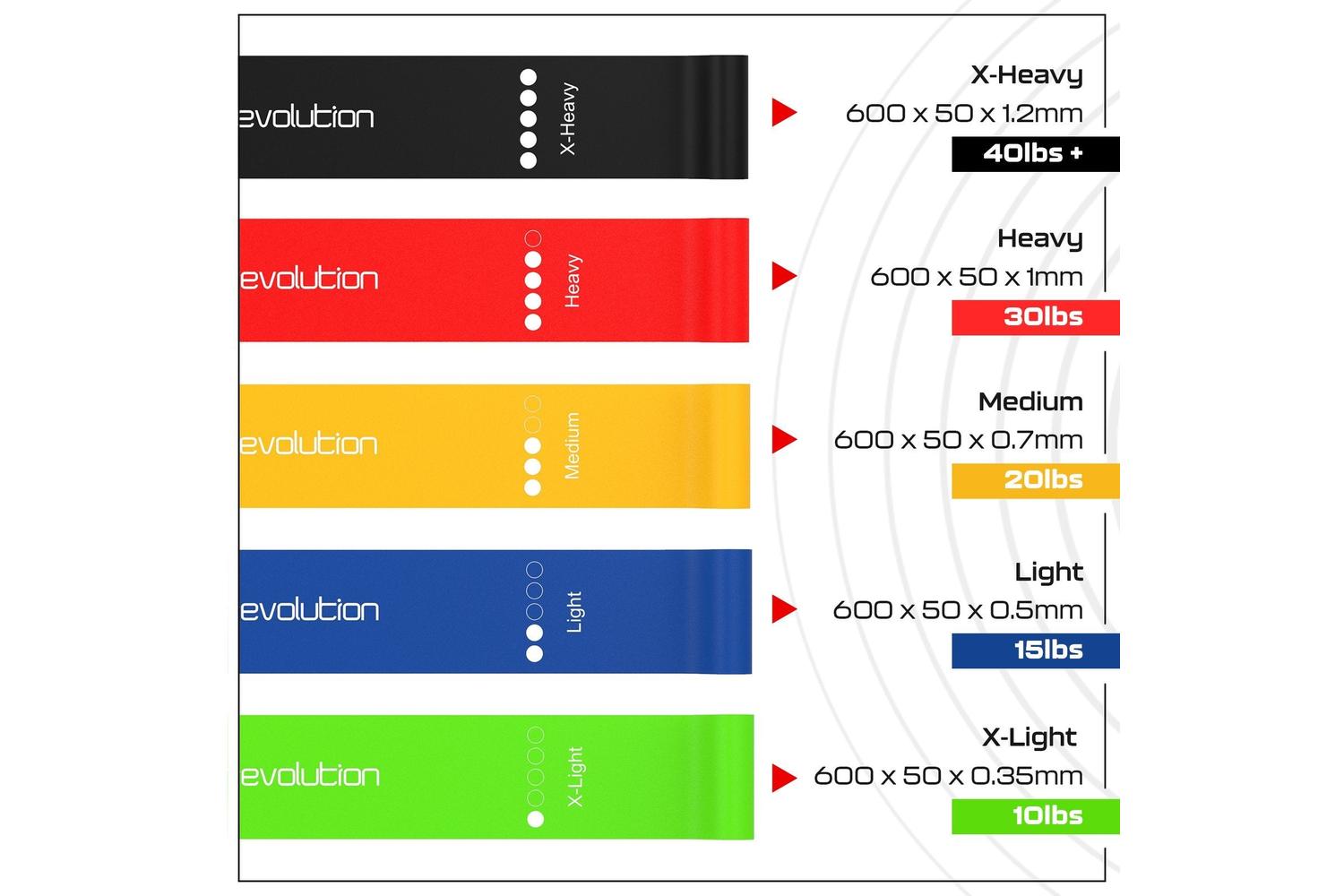 Each of the 5 different strength levels ranging from 2.5kg to 18kg has been masterfully built to respond to your diverse training demands. Crafted from natural, super strong latex, these bands deliver unmatched perseverance making them the prime addition to your home gym.