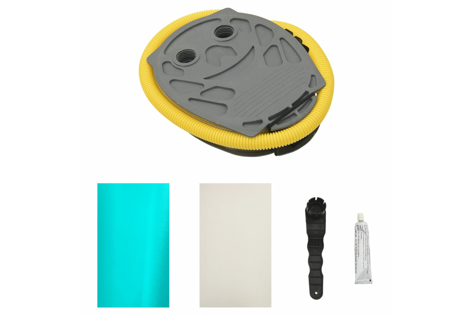 The delivery includes a repair bag and a foot pump for easy inflation and deflation as well.