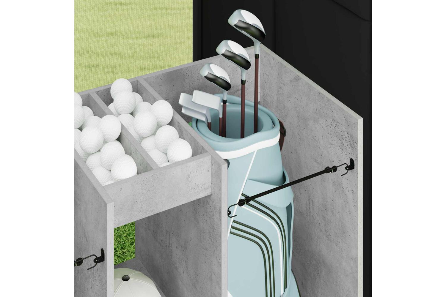 - Recommended Uses: Ideal for garages or any indoor space where versatile storage is needed. Whether used for organizing golfing gear or other equipment, it seamlessly integrates into rooms requiring modernist touches. Its utility extends beyond sports, accommodating various household storage needs.