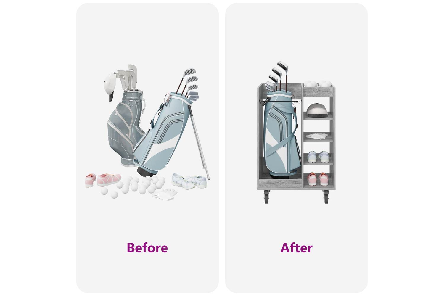 - Recommended Uses: Ideal for garages or any indoor space where versatile storage is needed. Whether used for organizing golfing gear or other equipment, it seamlessly integrates into rooms requiring modernist touches. Its utility extends beyond sports, accommodating various household storage needs.