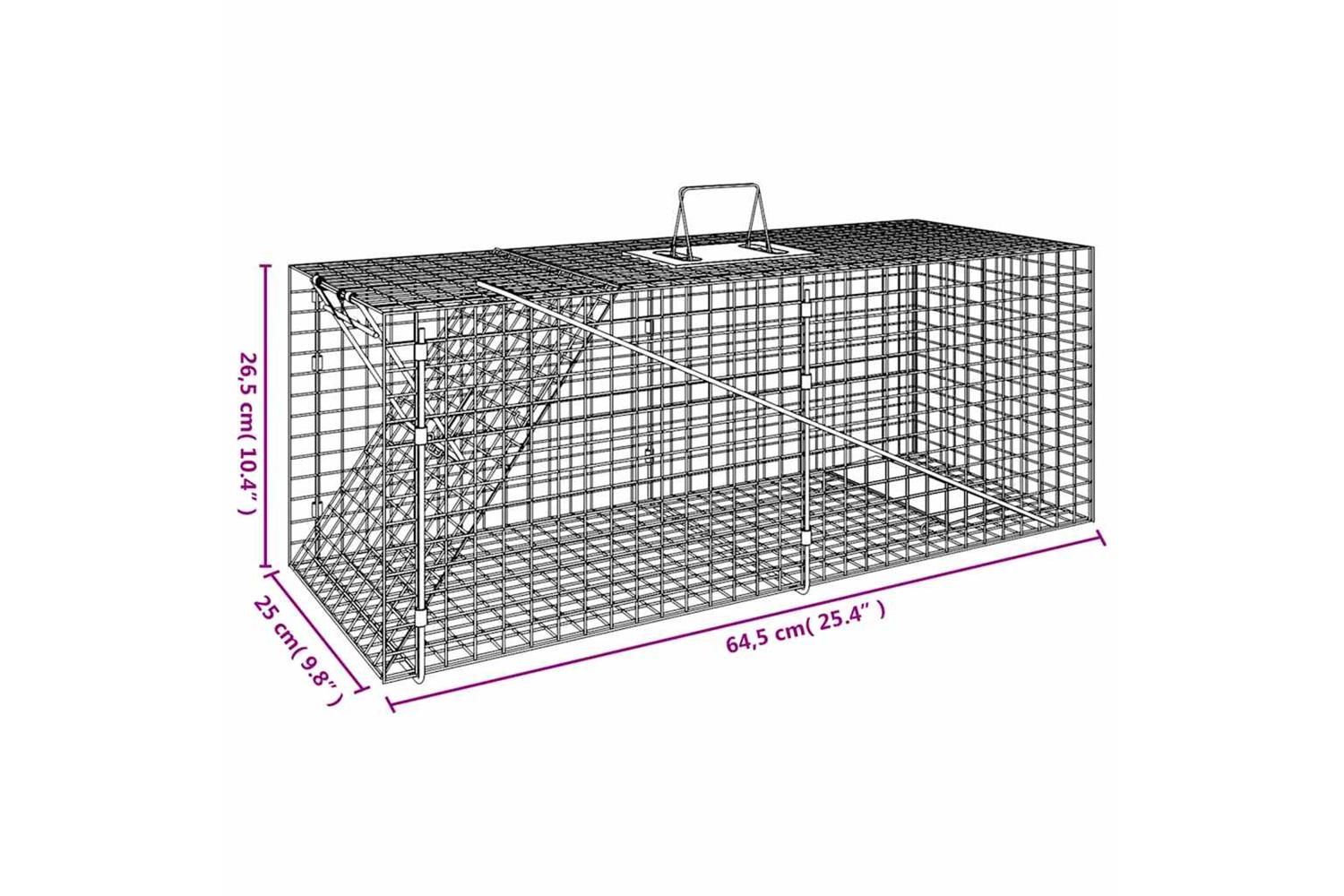 - Sturdy material: The live catch trap is made of sturdy iron wire mesh. Iron is a strong and hard material. It's a solid favourite in industrial and furniture construction. In addition, galvanisation provides better protection against corrosion and is useful for products that'll be used outdoors as well as in harsh environments.