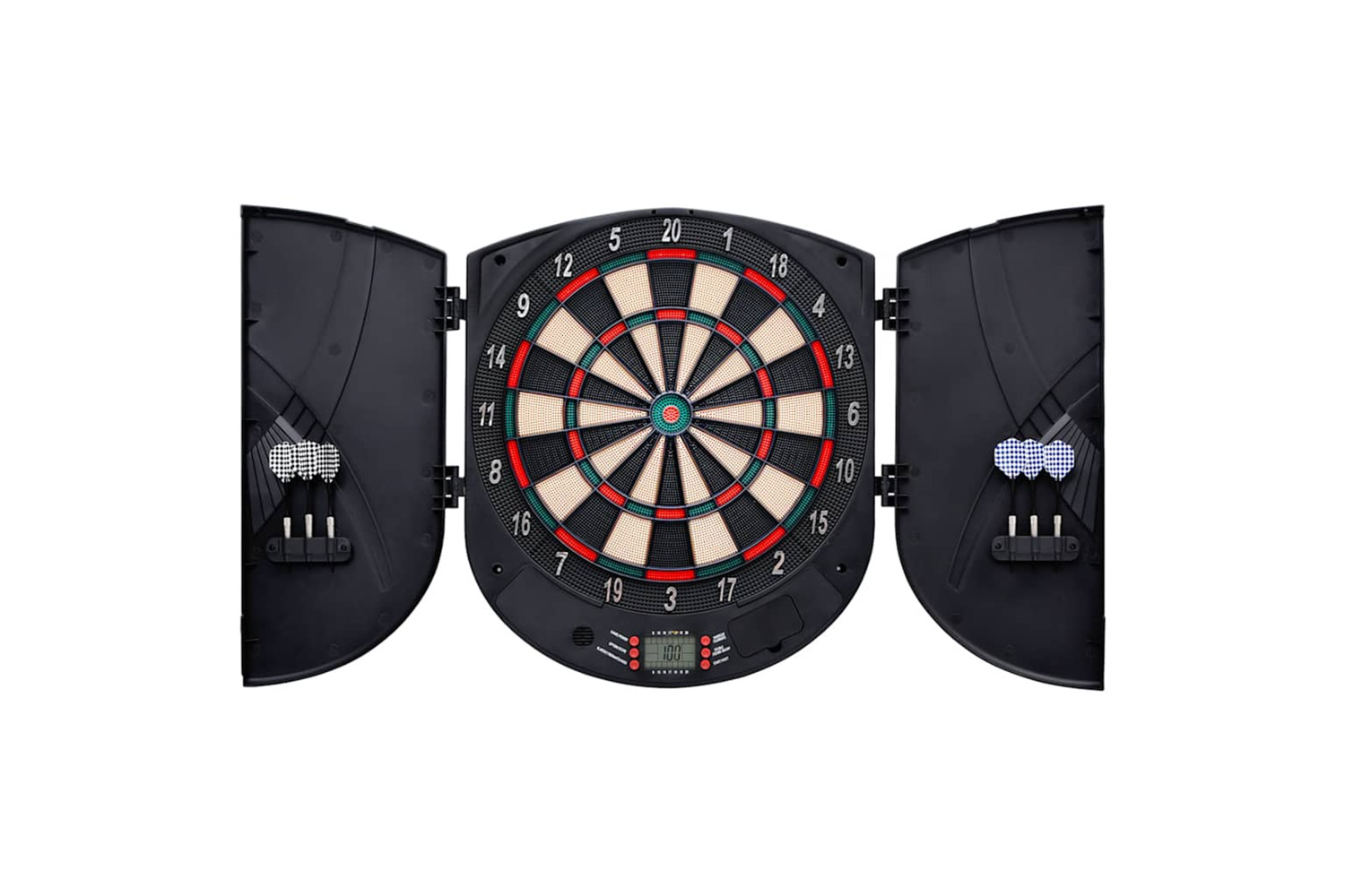 - Extra protection: In order to better extend the service life of the dart target game, this dartboard with an LCD display is designed with two side doors to increase the surrounding area. Additionally, two sides can be used to store darts.