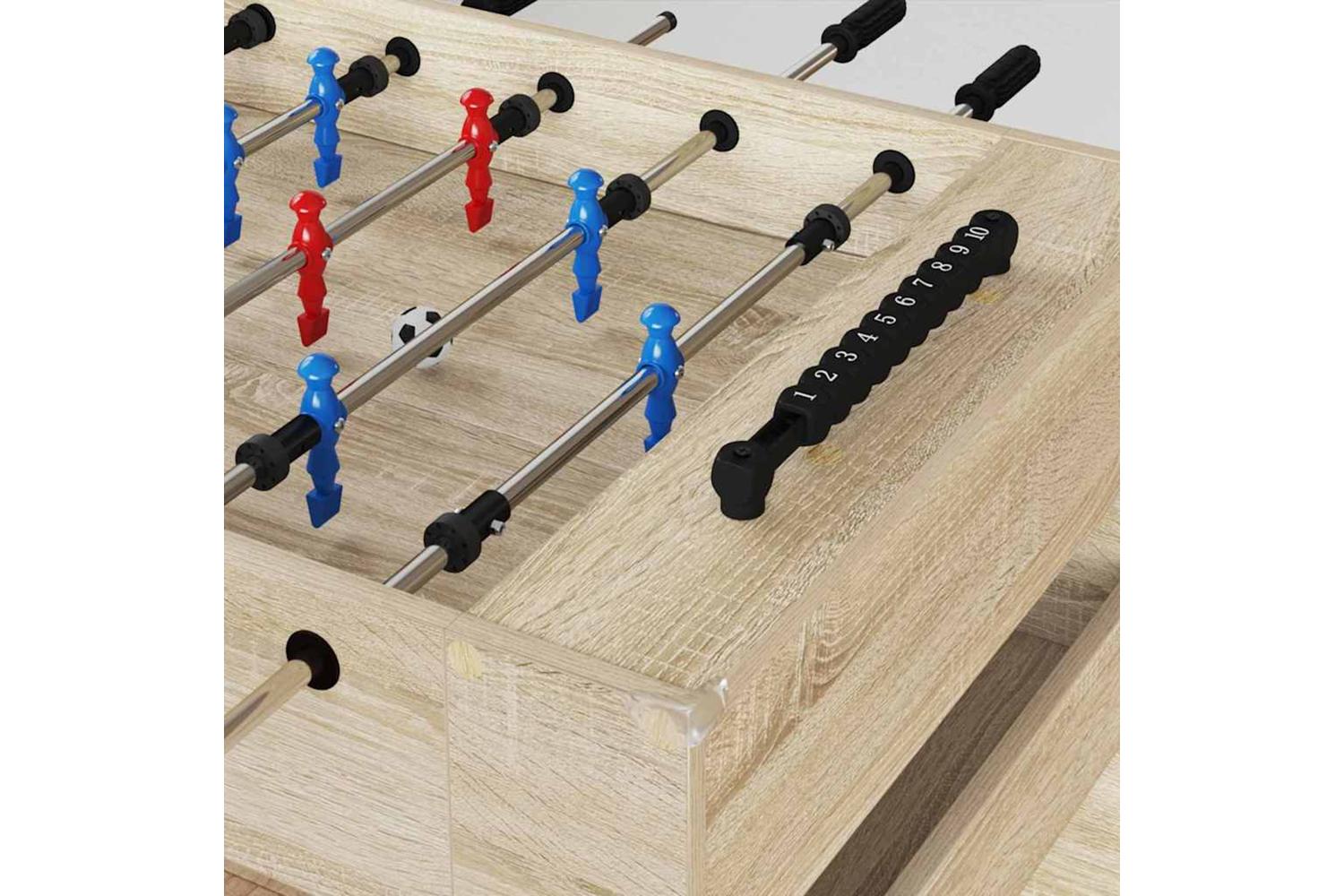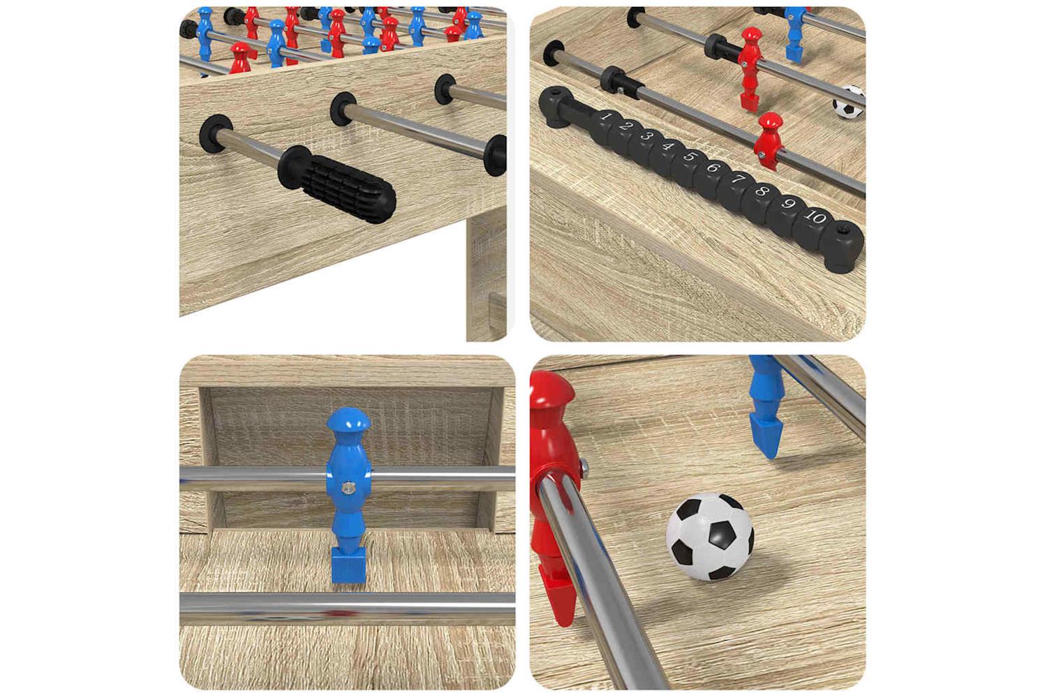 - Engineered Wood Sturdiness: This foosball table is constructed from engineered wood, ensuring a robust and stable playing surface. The modern material is chosen for its ability to withstand vigorous play, retaining its form and appearance over time. Its sturdy build instills confidence, allowing players to fully enjoy competitive or casual gameplay without any worry of wear and tear.