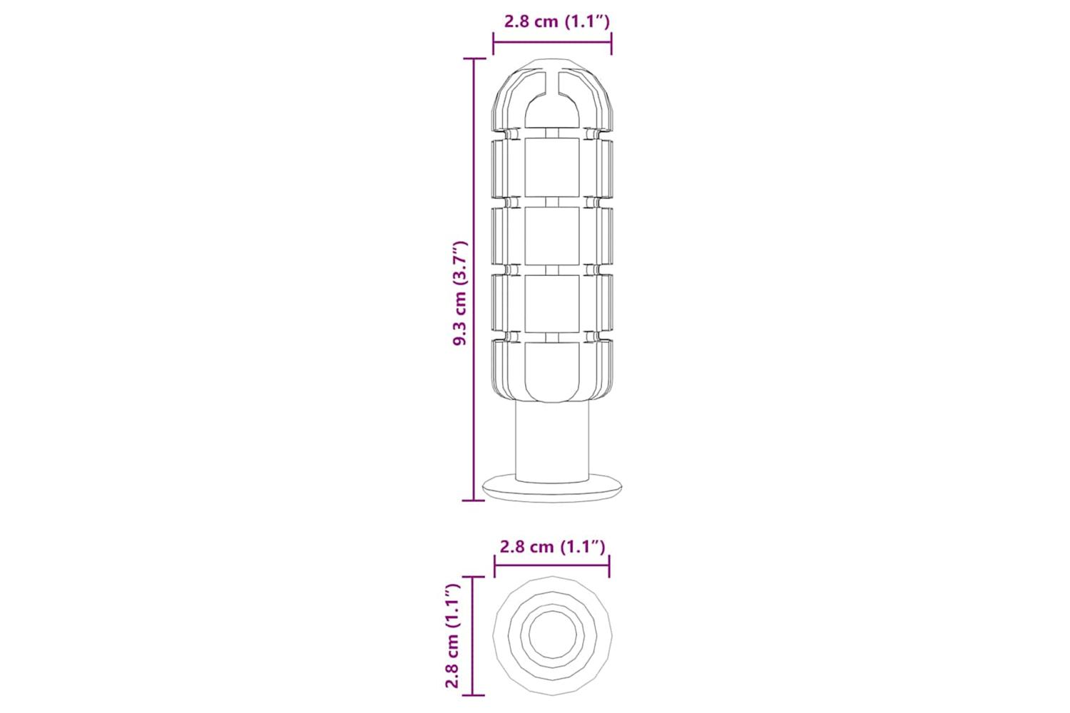- Overall dimensions: 2.8 x 2.8 x 9.3 cm (L x W x H)