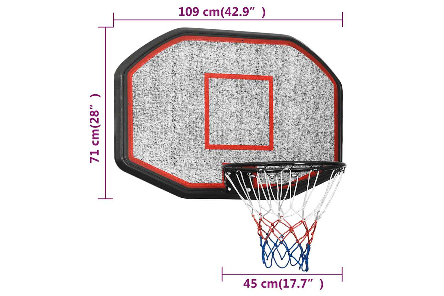 • Backboard size: 109 x 71 cm (L x W)