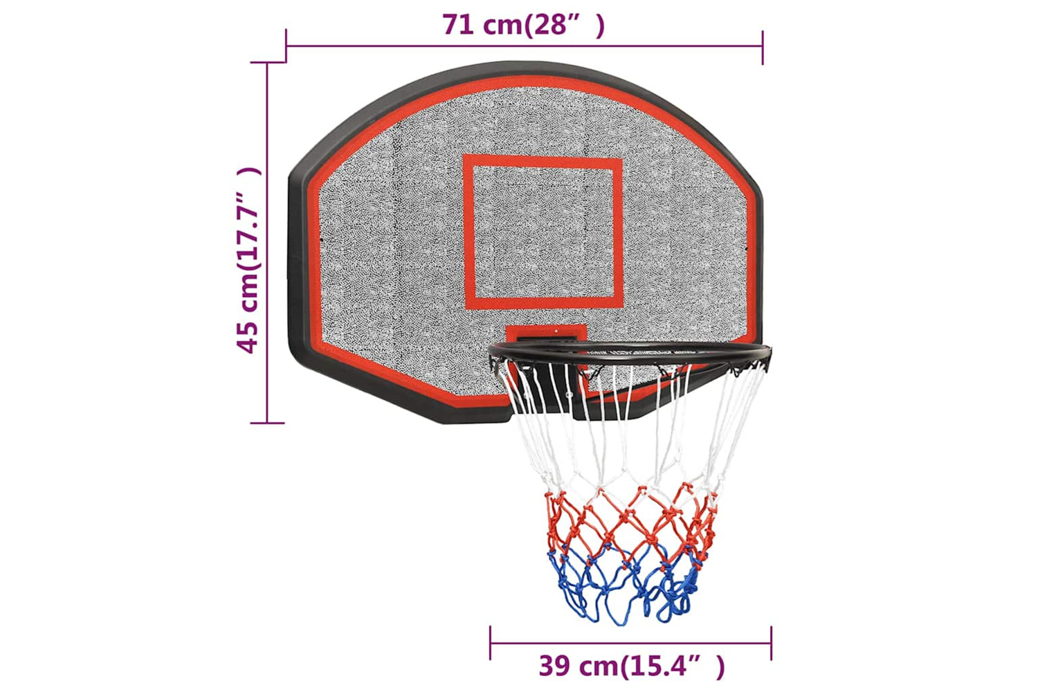 - Backboard size: 71 x 45 cm (L x W)