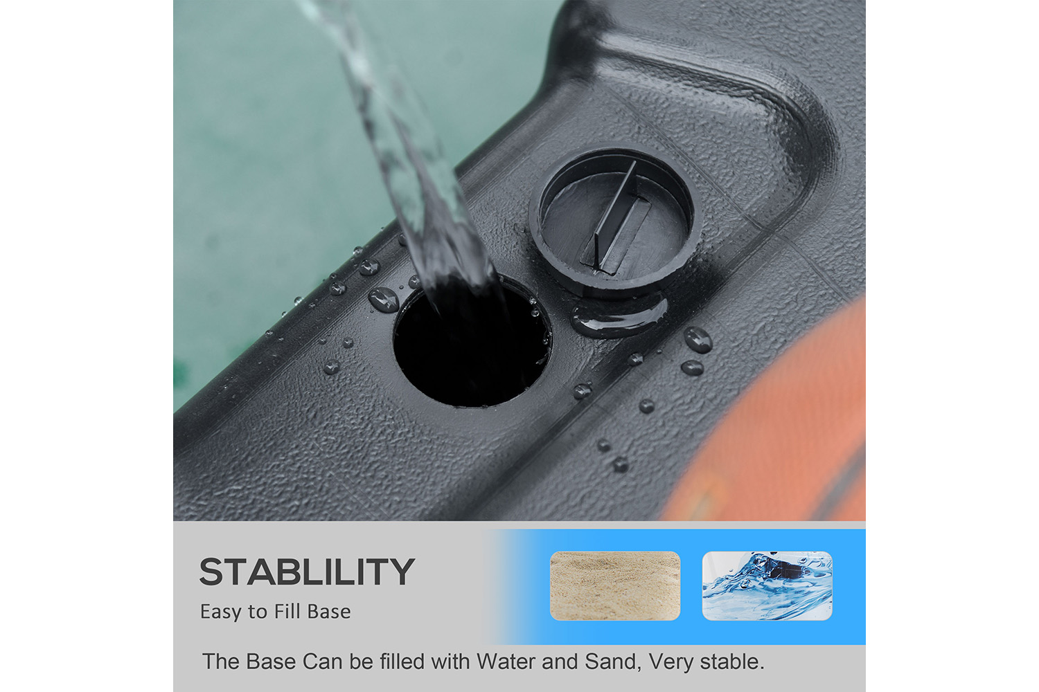 • Base weight capacity: 114 kg water/163 kg sand