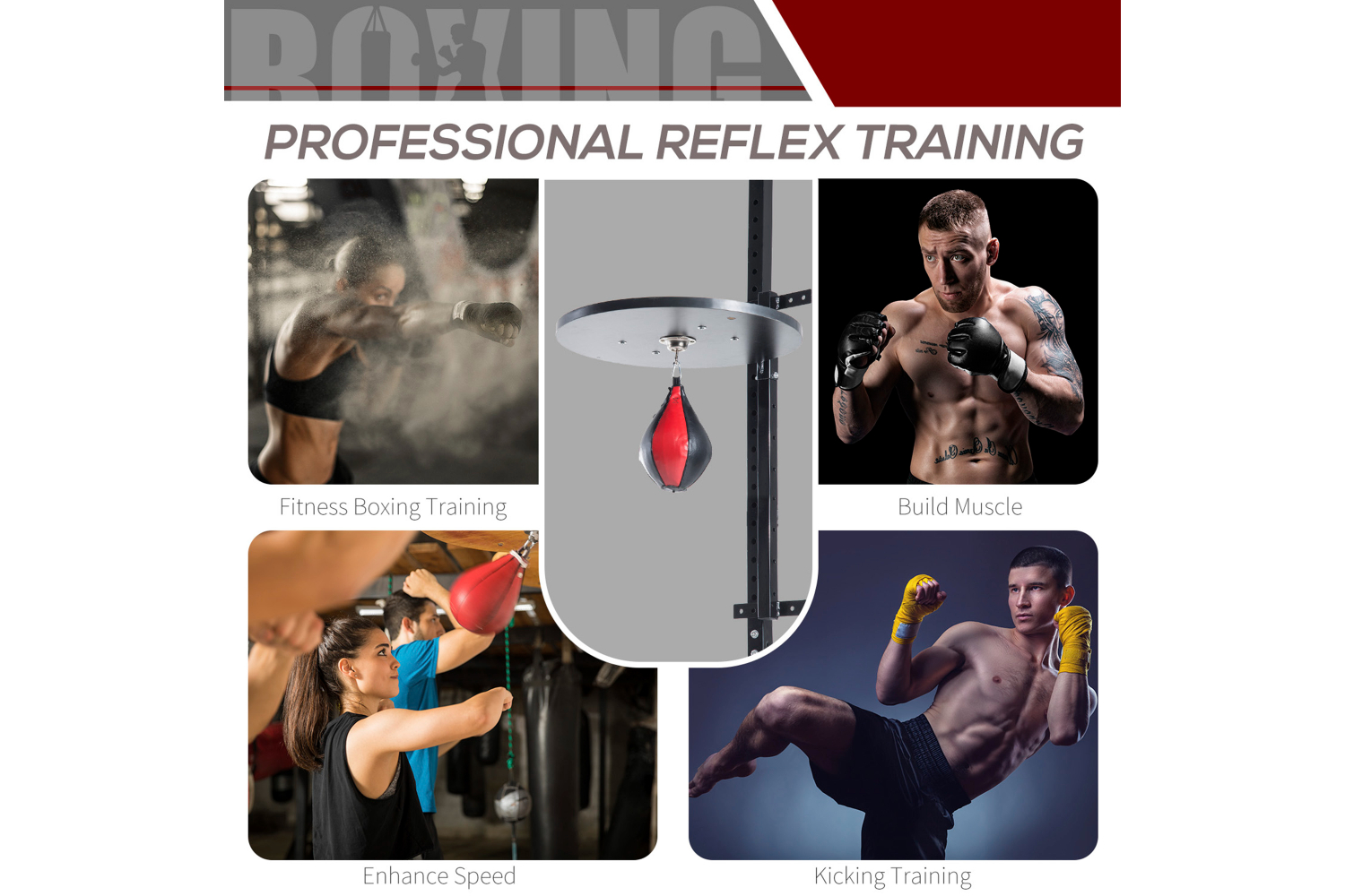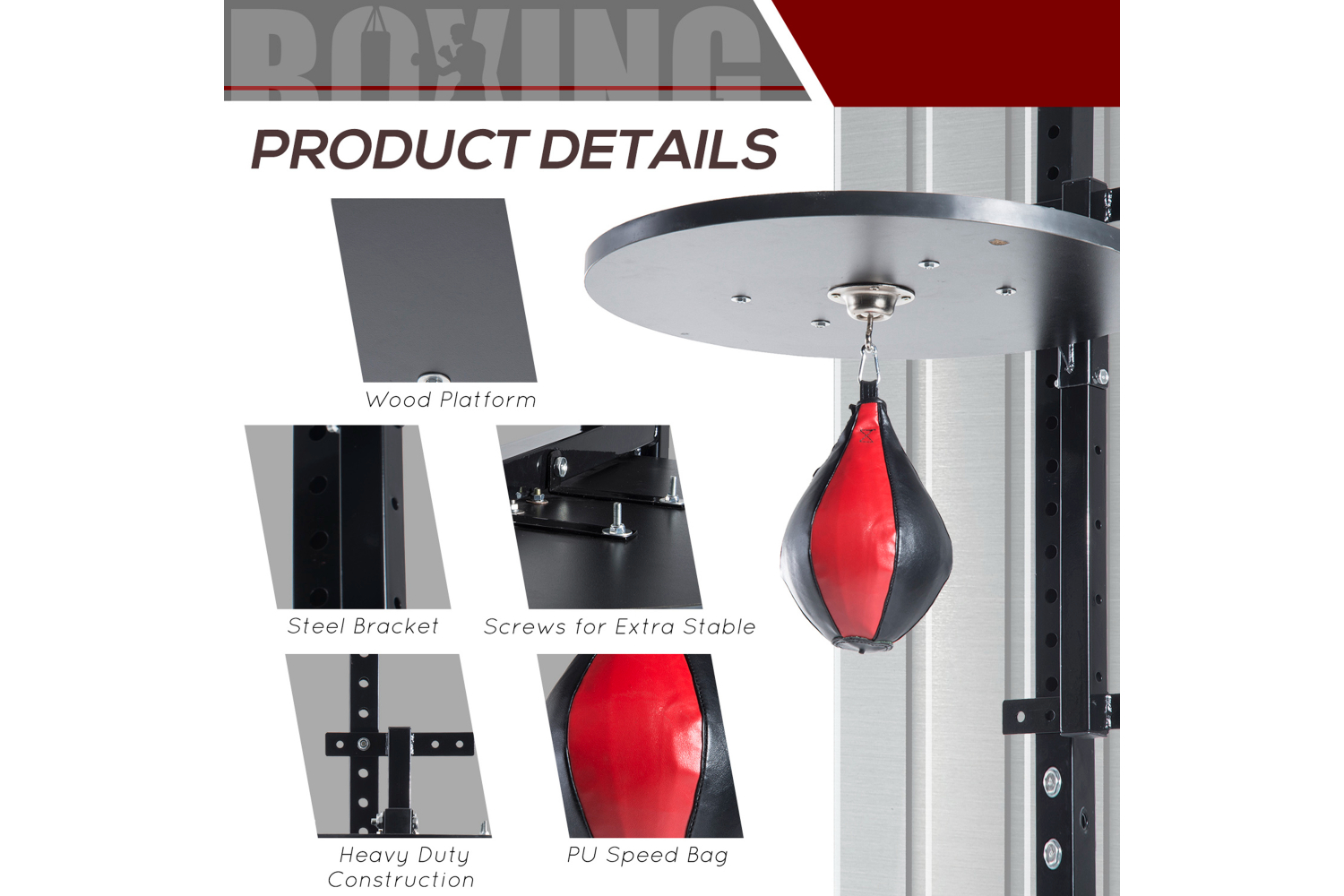 Homcom A90-022 Punching Boxing Speed Bag Boxing Workout Platform | Red/Black