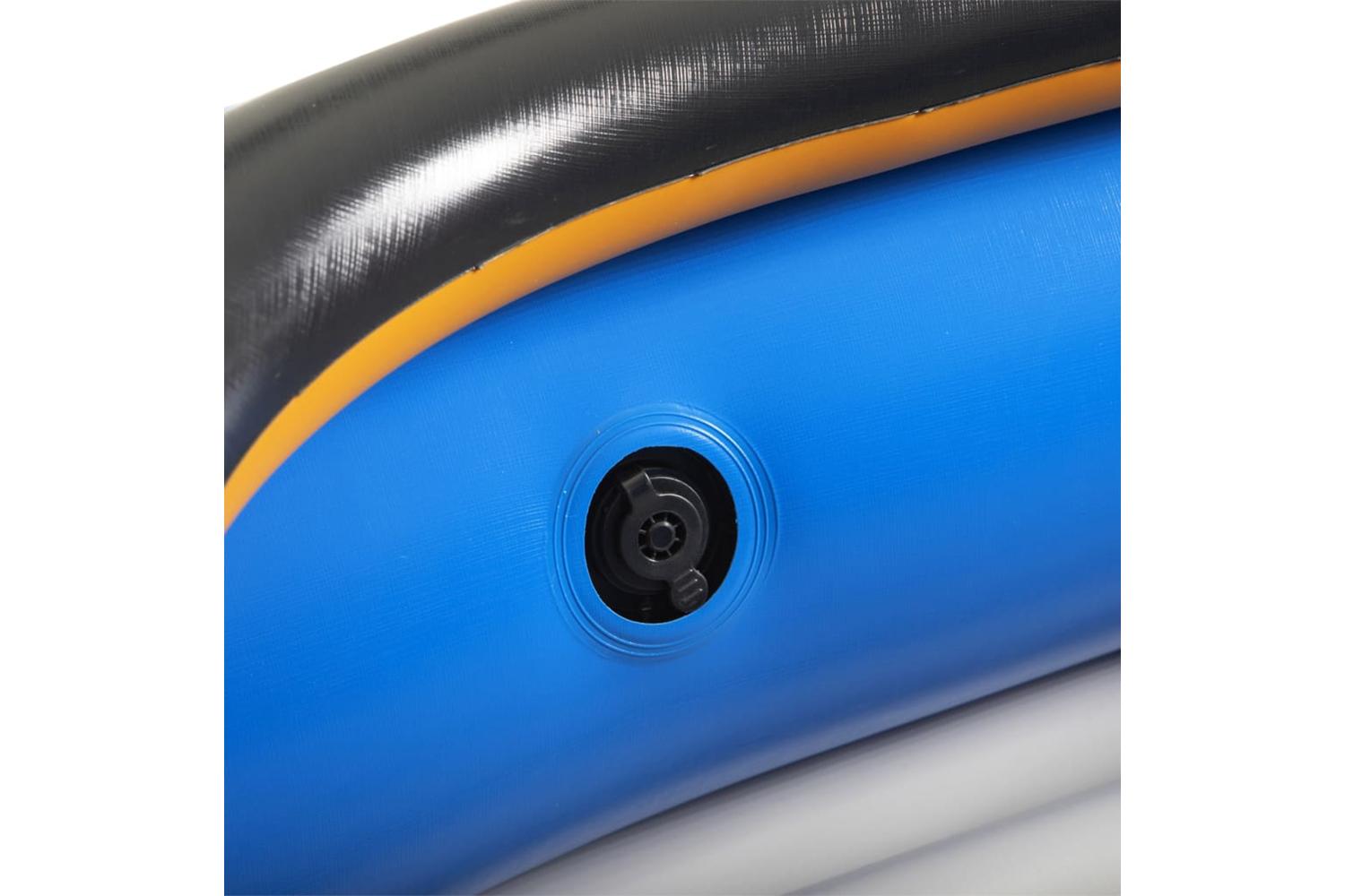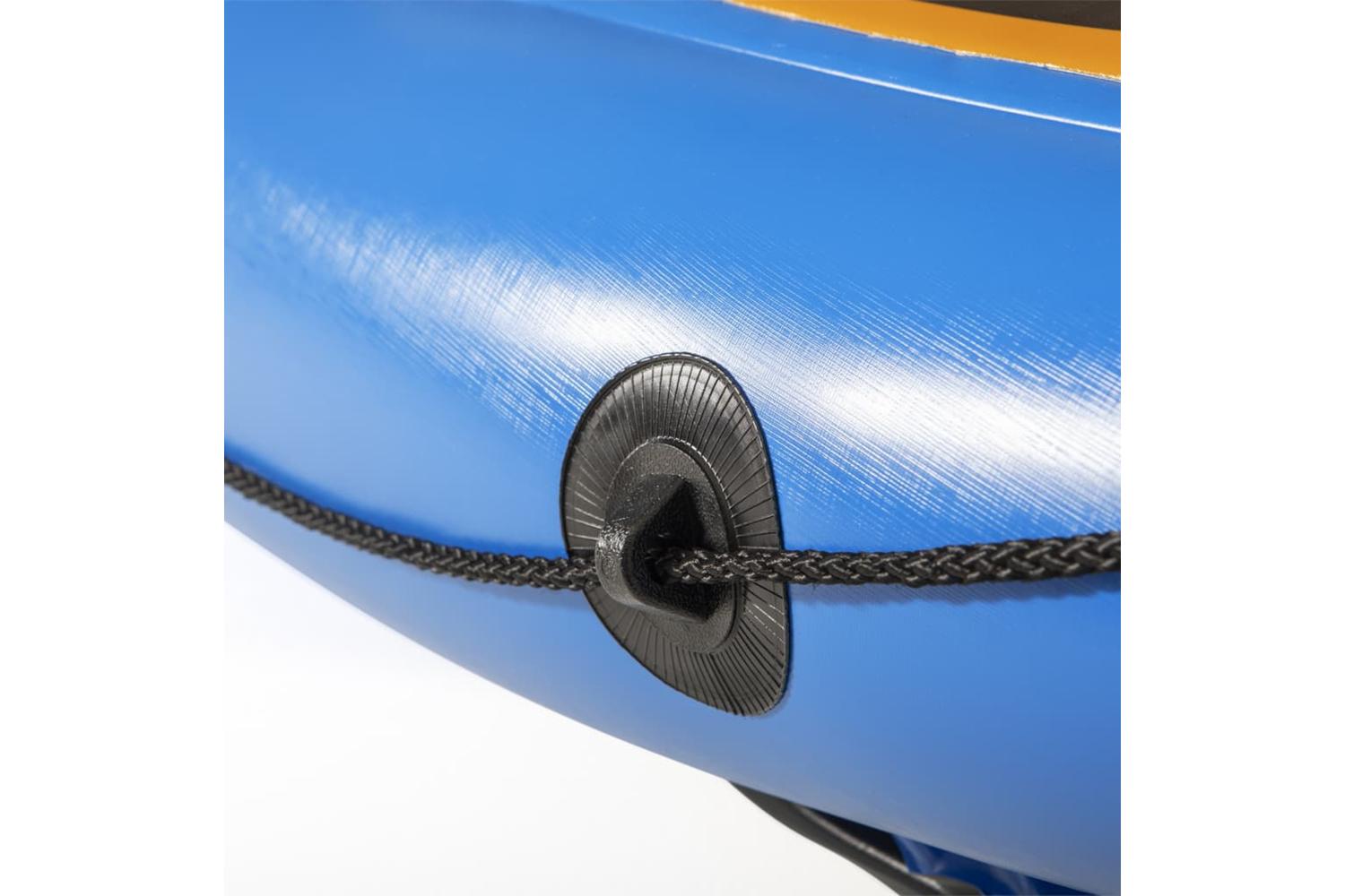 Heavy duty PVC construction provides durable protection from punctures and screw safety valve is guaranteed not to leak. This kayak features a lightweight, easy to carry design with an open cockpit for easy entry and exit. The inflatable seat and floor provide you with ultimate comfort in smooth steering. The removable pin at the bottom adds to the kayak's directional stability. The wrap around grab ropes make it handy to grab the kayak when you are in the kayak or to transport it. Additionally, hand pump is included for you to inflate in few minutes.