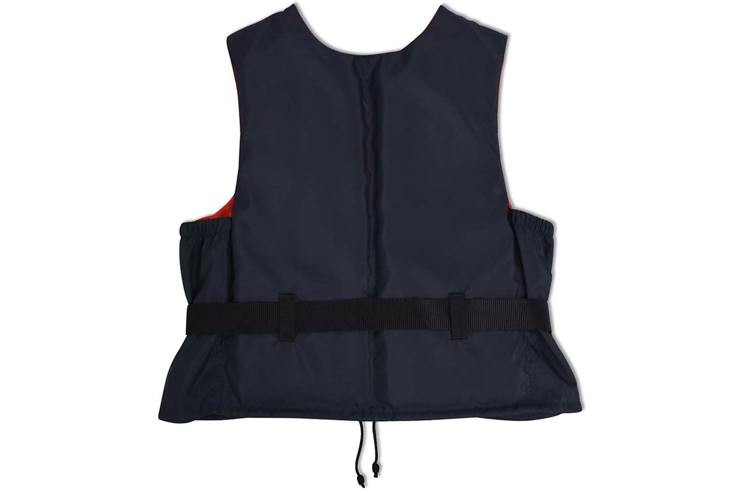 The rescue vest is made of 100% polyester with PE foam padding. The drawstring closure and the adjustable waist belt ensure the proper fit, so the vest will stay in place, even when you fall into the water.