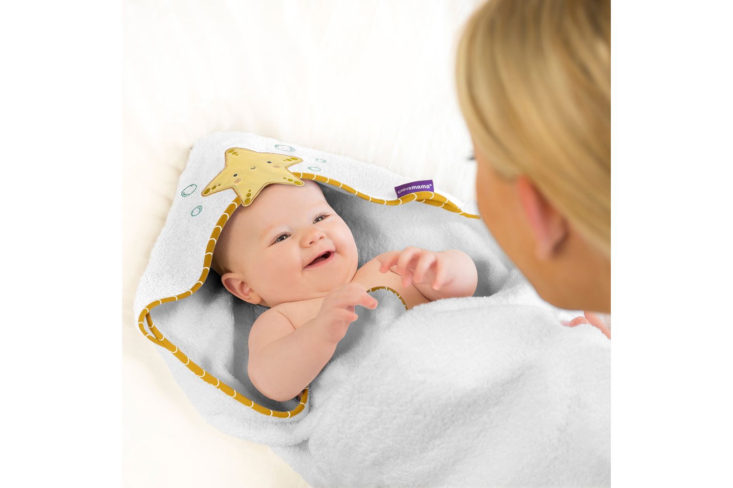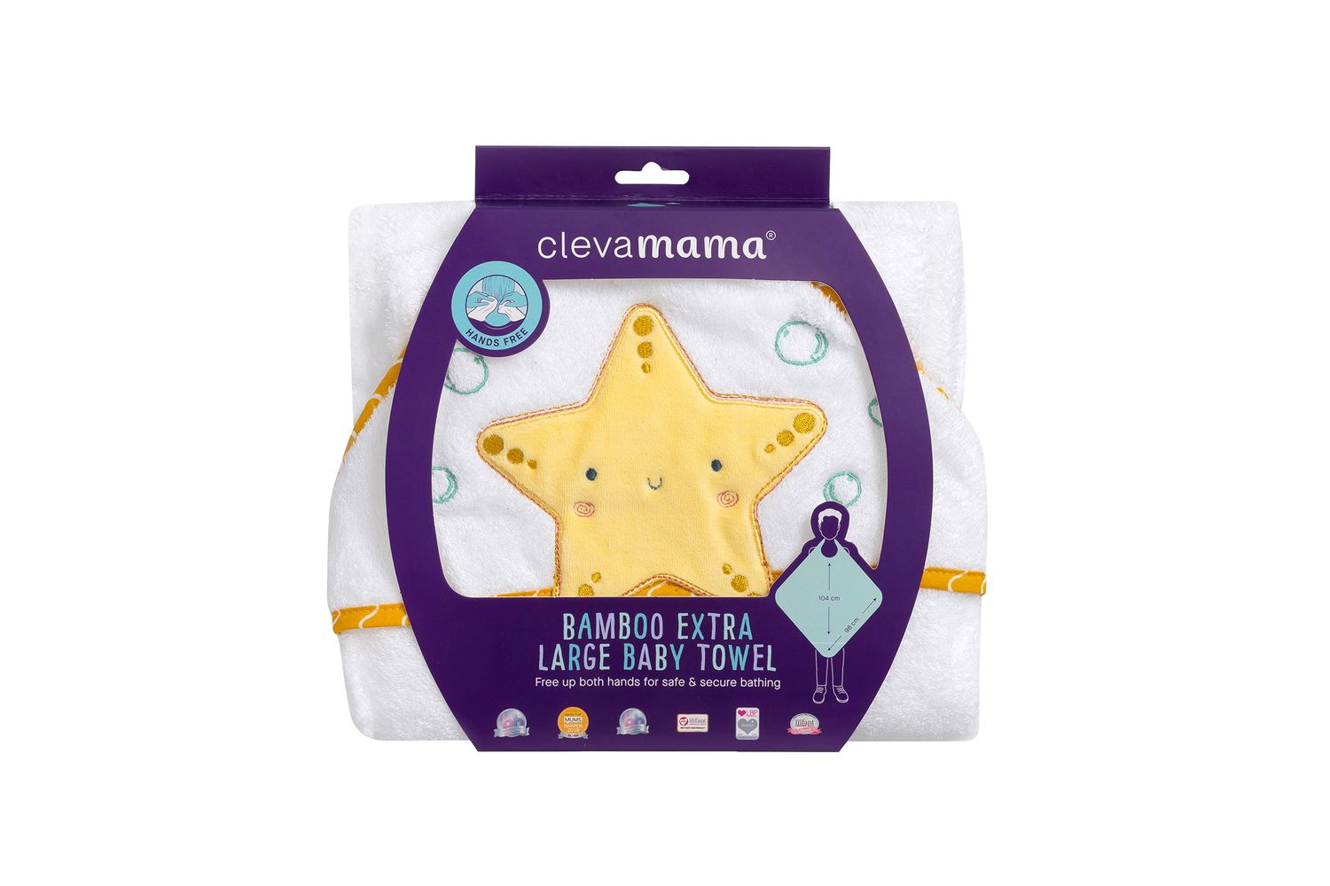 ClevaMama Bamboo Extra Large Apron Baby Bath Towel – Soft, Absorbent & Perfect for Bath TimeSuitable from newborn to 4 years+, this extra-large, super-soft, Bamboo Apron Baby Bath Towel is designed to be worn around your neck like an apron, which makes it easy to lift and snuggle your baby. The clever design keeps your clothes dry and your baby safe so you can both enjoy stress-free bath time and baby swimming. The towel is large enough to completely wrap around your baby and cover their head with the hood, to keep in the all important heat and is gentle on your little ones soft and delicate skin. Features X-Large Apron Bath Towel - Keep your hands free so you can hold your baby safely. Cotton Towels with Hood - Soft and gentle on your baby and toddler skin. Super Absorbent Cotton - Special weave for drying between fingers and toes. High Quality - Multi award winning for innovation, quality and design. Perfect Gift - Packed in a beautifully designed box. Washing Instructions Machine washable at 40°. Do not mix light and dark colours. Do not soak or bleach. Tumble dry at low temperature. Iron on reverse side.