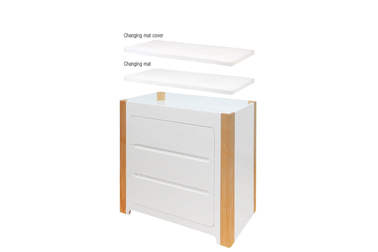 Cocoon quality craftsmanship and innovative technologies give your nursery furniture a much longer life span. They make sure there’s no need to keep buying new furniture at each stage of your child’s development. Cocoon, it’s what you want! Following the innovative design philosophy synonymous with Cocoon furniture, this change area is the ultimate in designer furniture which is much more than a changing table. The Evoluer change area is constructed with 3 large & fully extendable storage draws and has an integrated changing station.