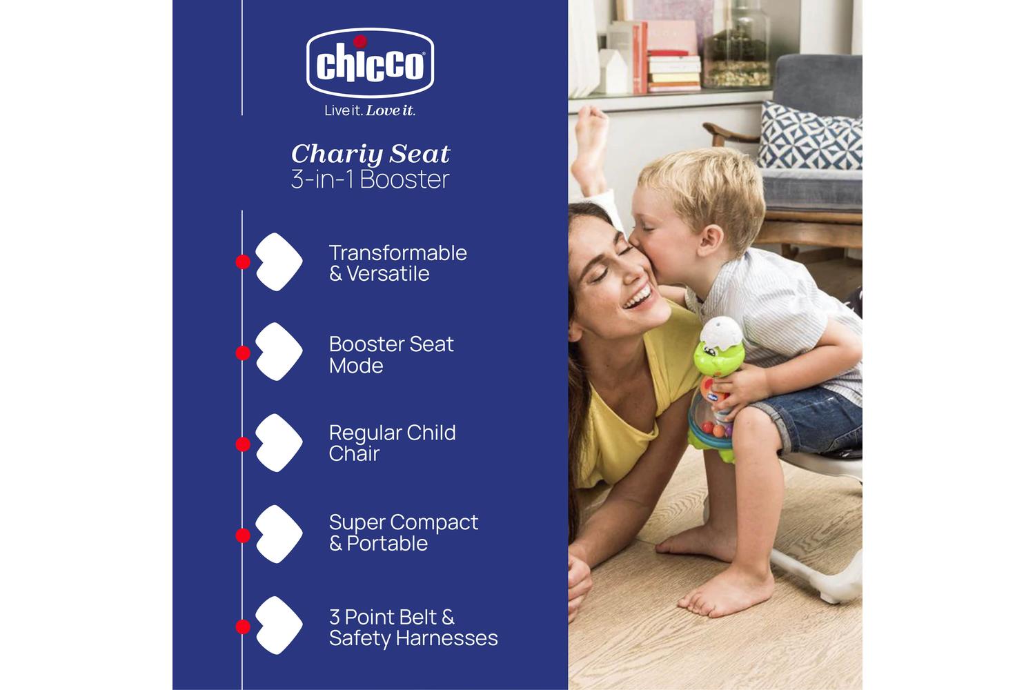 Evoke the essence of relaxed family meal times while endorsing your child’s independence, flexibility, and freedom - all packaged neatly in the CHICCO Chairy Booster Seat.