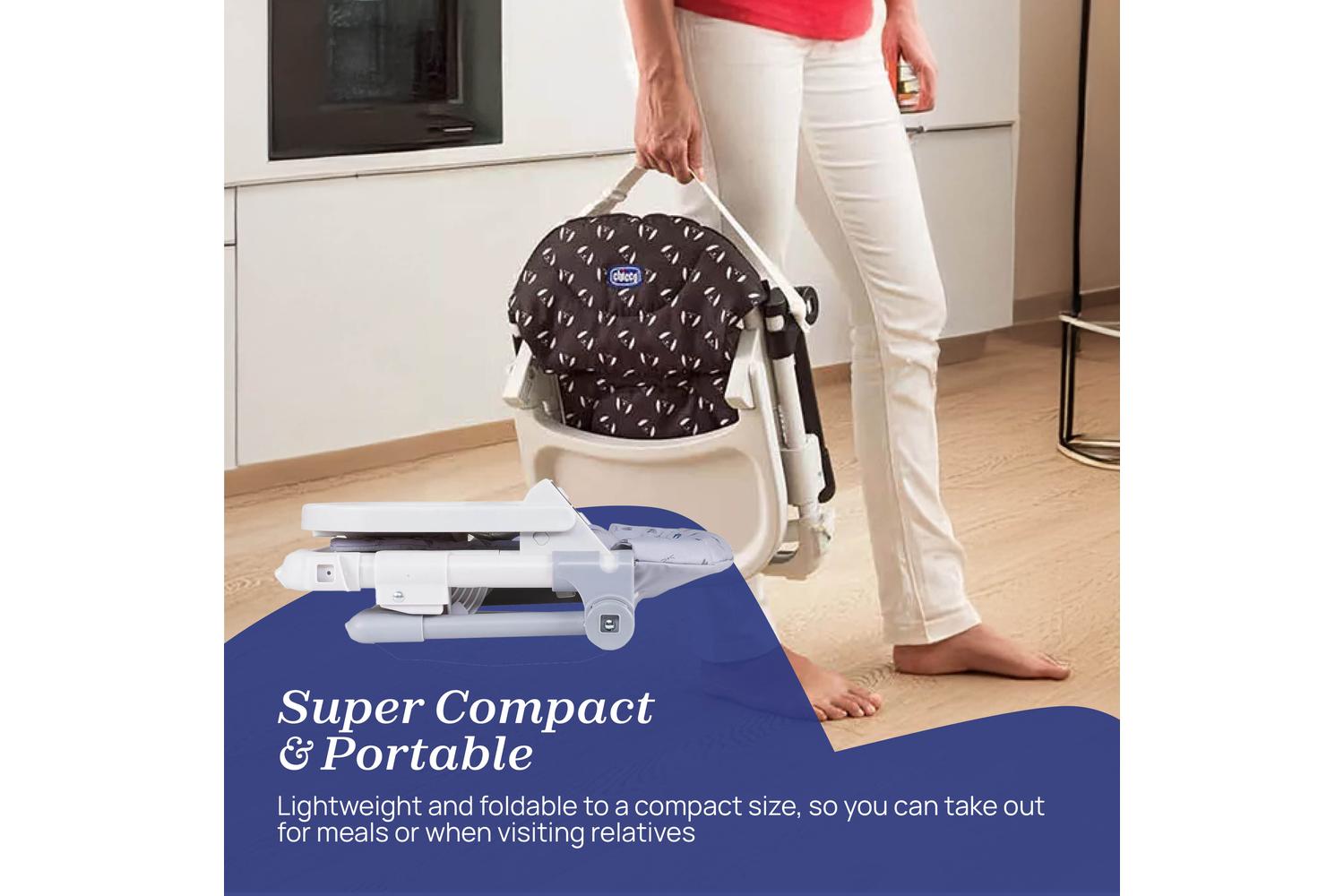 Forget about the strain of storing colossal baby chairs! The CHICCO Chairy Booster Seat is lightweight, foldable and can be effortlessly tucked away under a pram, making it the best friend for dining-out adventures. Its flexibility goes a notch higher with 4 adjustable height positions, permitting fitting to various table heights amazingly straightforward.