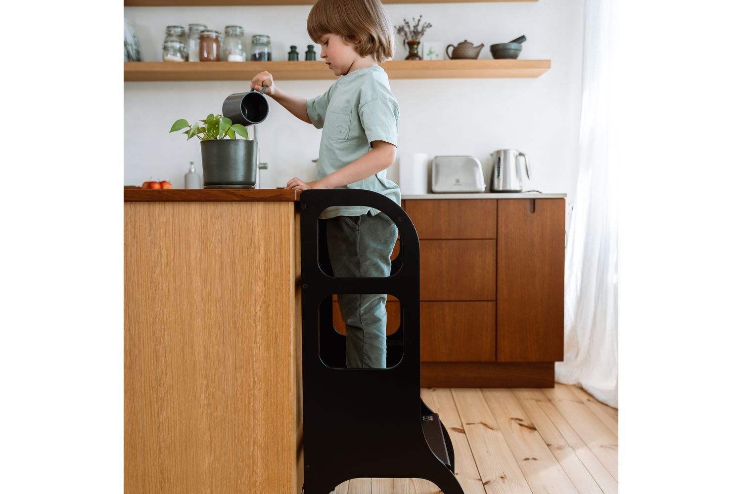 Adjustable Learning Tower Step Up Black | Learning Tower | Wood | Adjustable Height