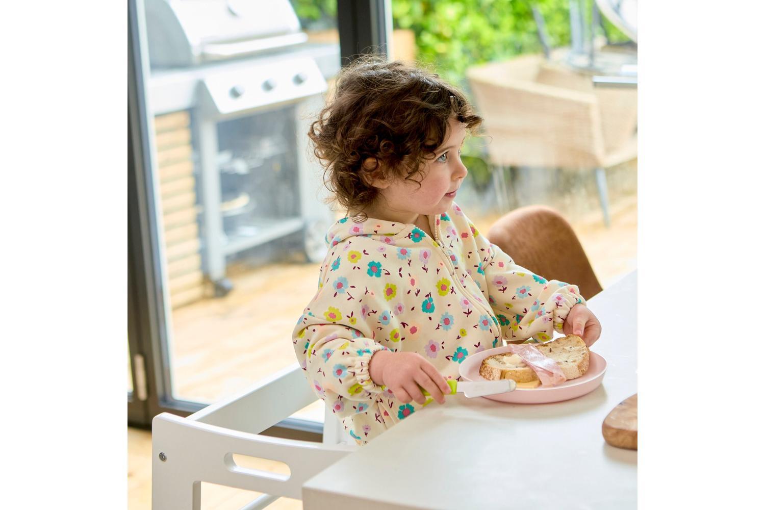 - Ideal working height for toddlers to reach kitchen counters and tables