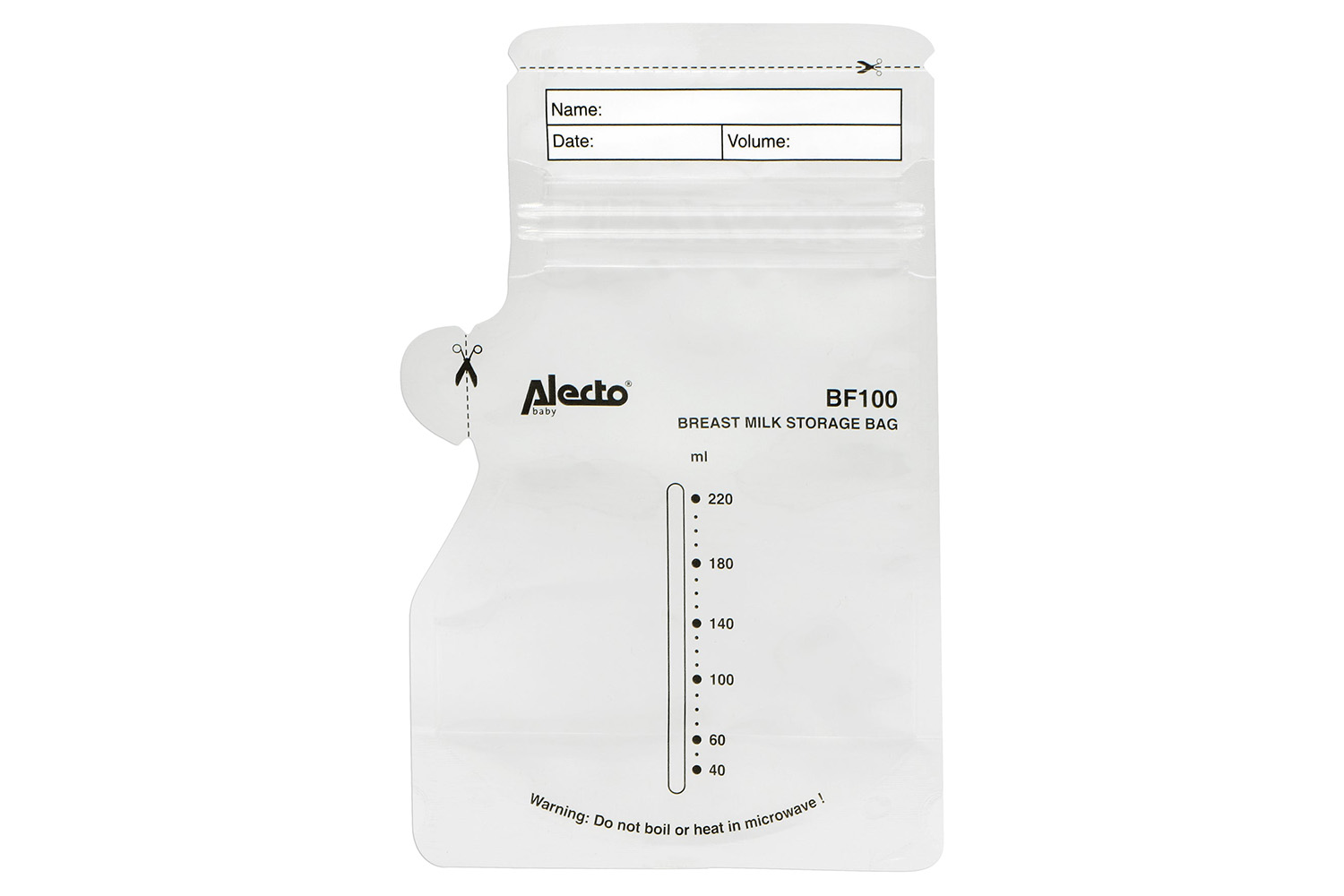 Additionally, the Alecto BF100 Breast milk storage bags are 100% leak-proof due to the double zip closure. They have a handy pouring spout for easy use on the go.