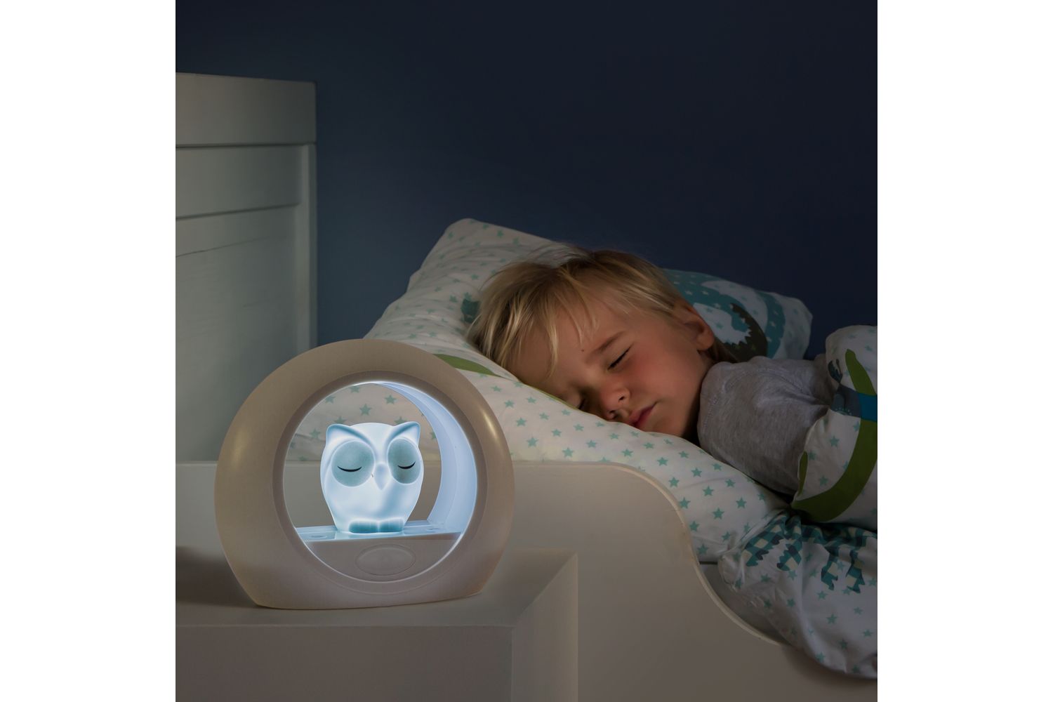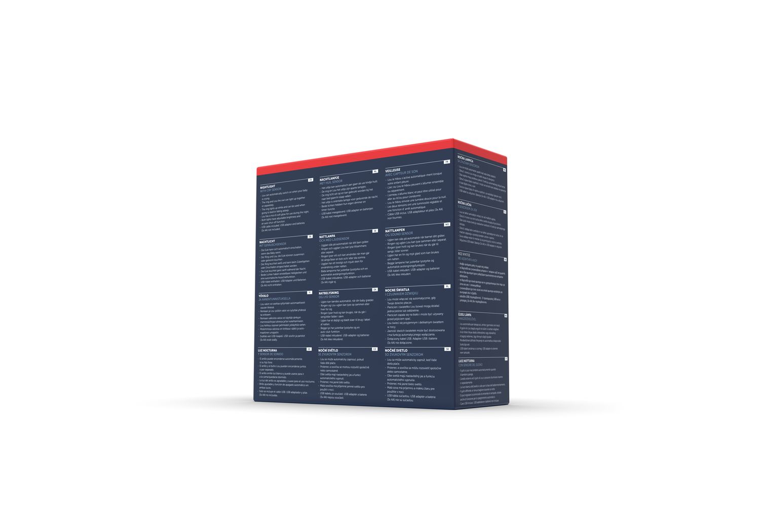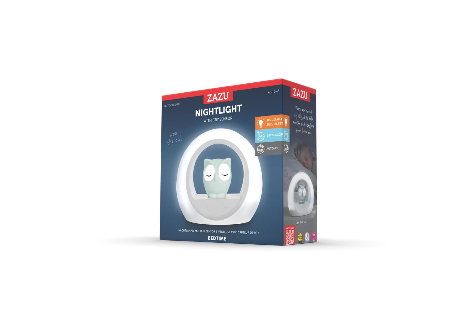 Meet Lou the Owl Is your child afraid of the dark? Our Lou can help to scare away the dark. With its two lights, adjustable brightness it can be set according to your wishes. Activate the timers to automatically shut off one or both lights. The cry sensor will make sure to switch the light back on whenever your child wakes up at night. Activated by sound. Tech Specs Dimensions: 16 cm x 16 cm x 7 cm Child-safe ABS; LED USB cable included (Input: 5V, 500mA) Requires 3 x AA alkaline batteries (not included) ZAZU products have been tested according to international safety regulations