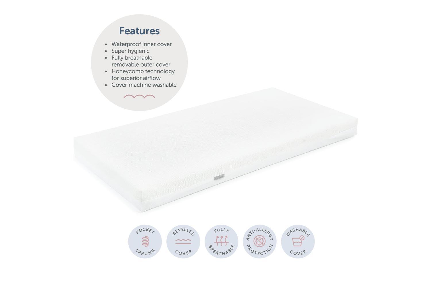 Choose the Baby Elegance Breath Dry Pocket Spring Cot Bed Mattress for a blend of comfort, durability, and easy care. It is the ideal choice for parents seeking a reliable, long-lasting mattress that supports their baby's well-being and delivers exceptional value. Invest in a mattress that is trusted by Irish families and recommended by sleep experts for its innovative features and thoughtful design.
