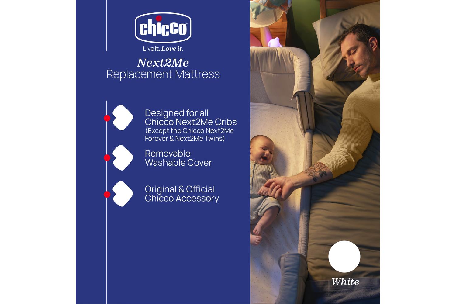 As a parent, you understand the irreplaceable value of a good night’s sleep — not just for you but for your precious little one too. The Chicco Next2Me Evo & Essential replacement mattress demonstrates our dedication to providing the most comfortable, original and official Chicco accessory, offering your baby a secure and snug comfort throughout the night.