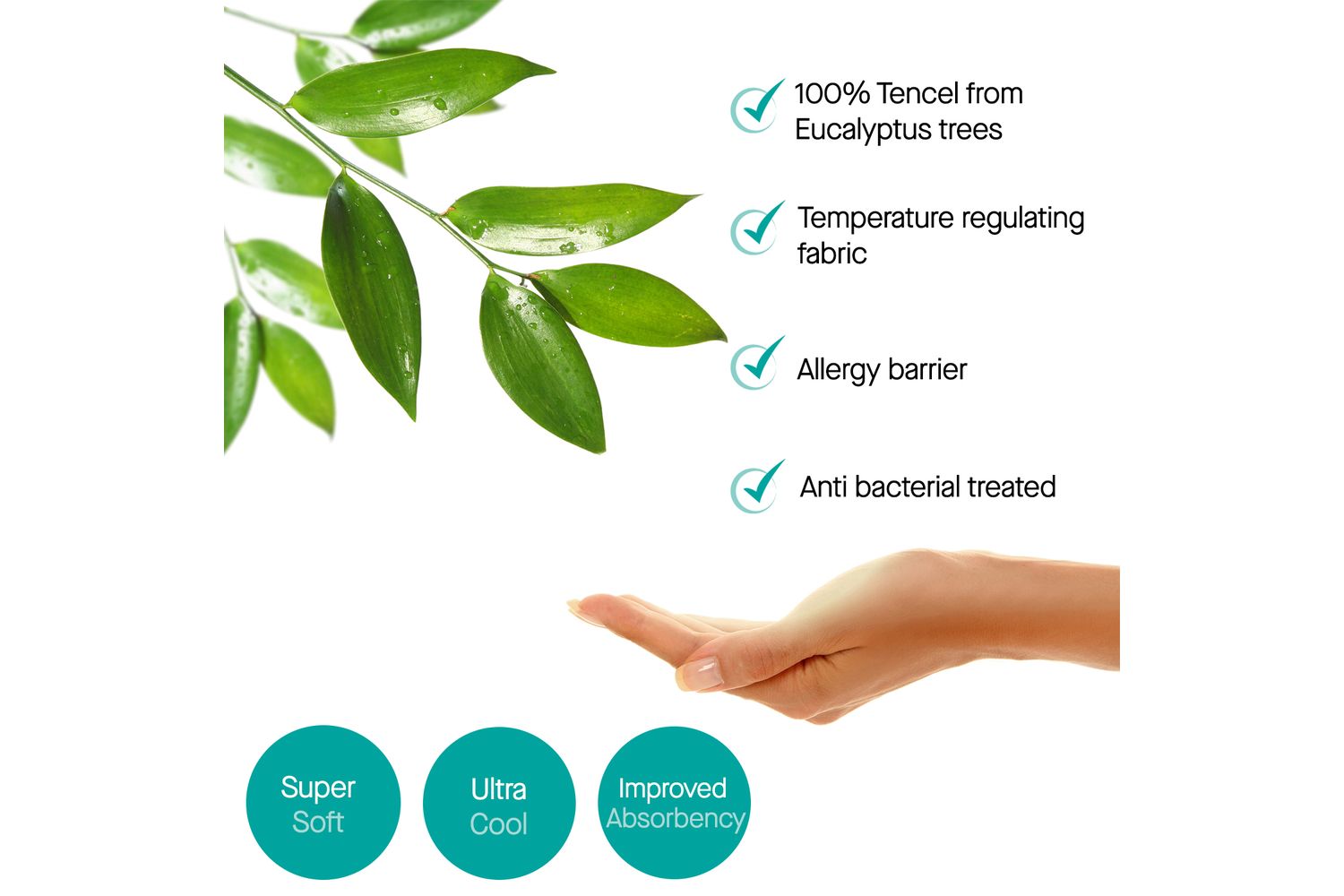 ClevaMama Tencel® Fitted Waterproof Mattress Protector – Soft, Breathable Protection for Your MattressMade with 100% Tencel®, with fibres derived from sustainable eucalyptus wood, the ClevaMama Mattress Protector is naturally anti-microbial, resisting dust mites, bacteria and allergens. Tencel is luxuriously soft, breathable, waterproof and absorbs substantially more than cotton (up to 50%) ensuring a drier and healthier sleeping climate. Textiles made with sustainable Tencel are softer than silk, cooler than linen and even more absorbent than cotton, it is also resistant to wrinkles.