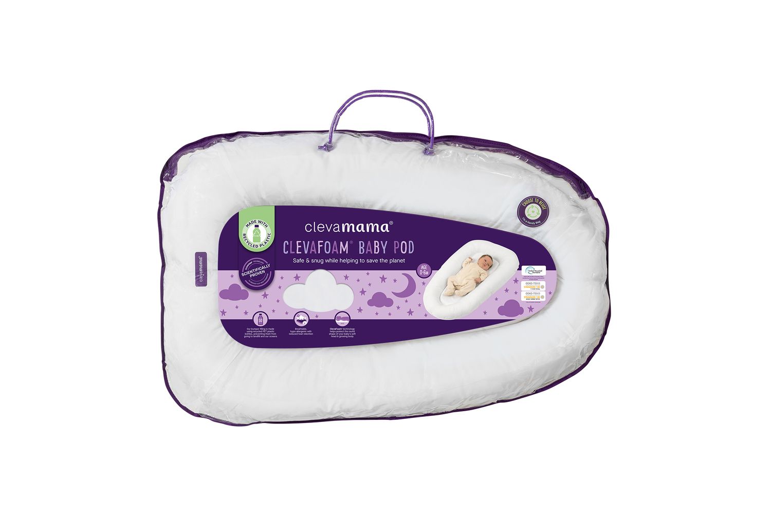ClevaFoam® Baby Pod – Safe, Supportive, and Versatile Sleep Solution for InfantsThe ClevaFoam® Baby Pod gives your baby a safe and snug sleeping environment. Using ClevaFoam® technology, this soft luxurious and breathable pod supports baby’s entire body from head to toe during those early months when they are growing at their fastest rate. Can be used for supervised resting, tummy-time, nappy-changing, playing and lots of cuddles.