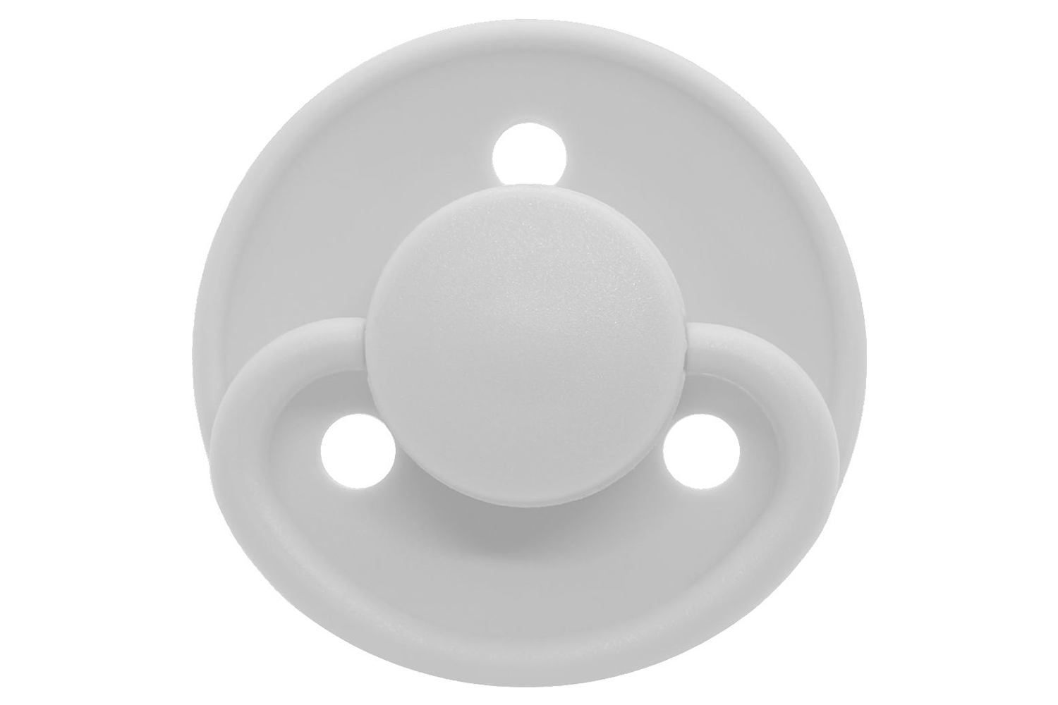 This round retro soother is available in two sizes (0m+ og 6m+) , 4 different colours and 2 materials (latex og silicone).