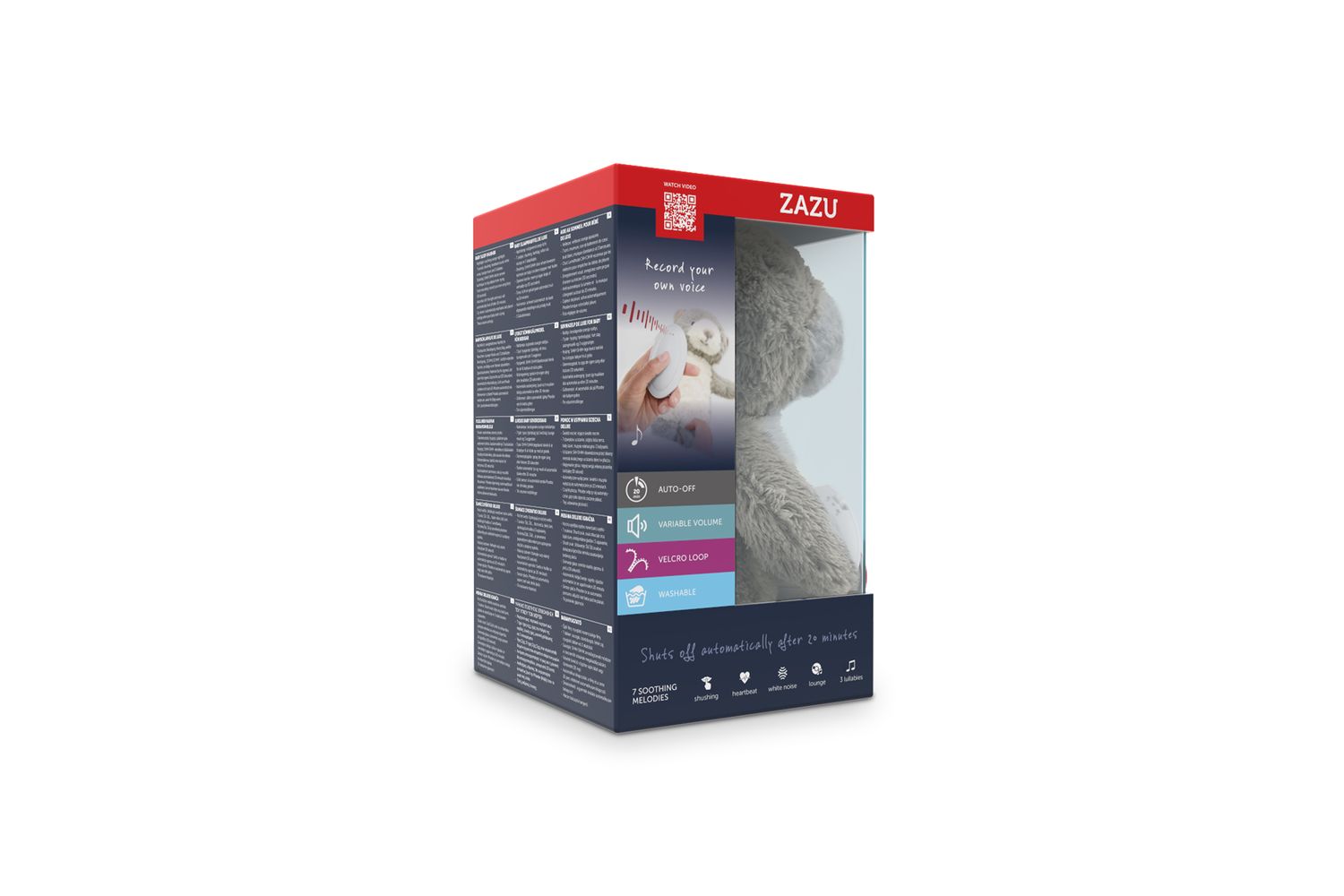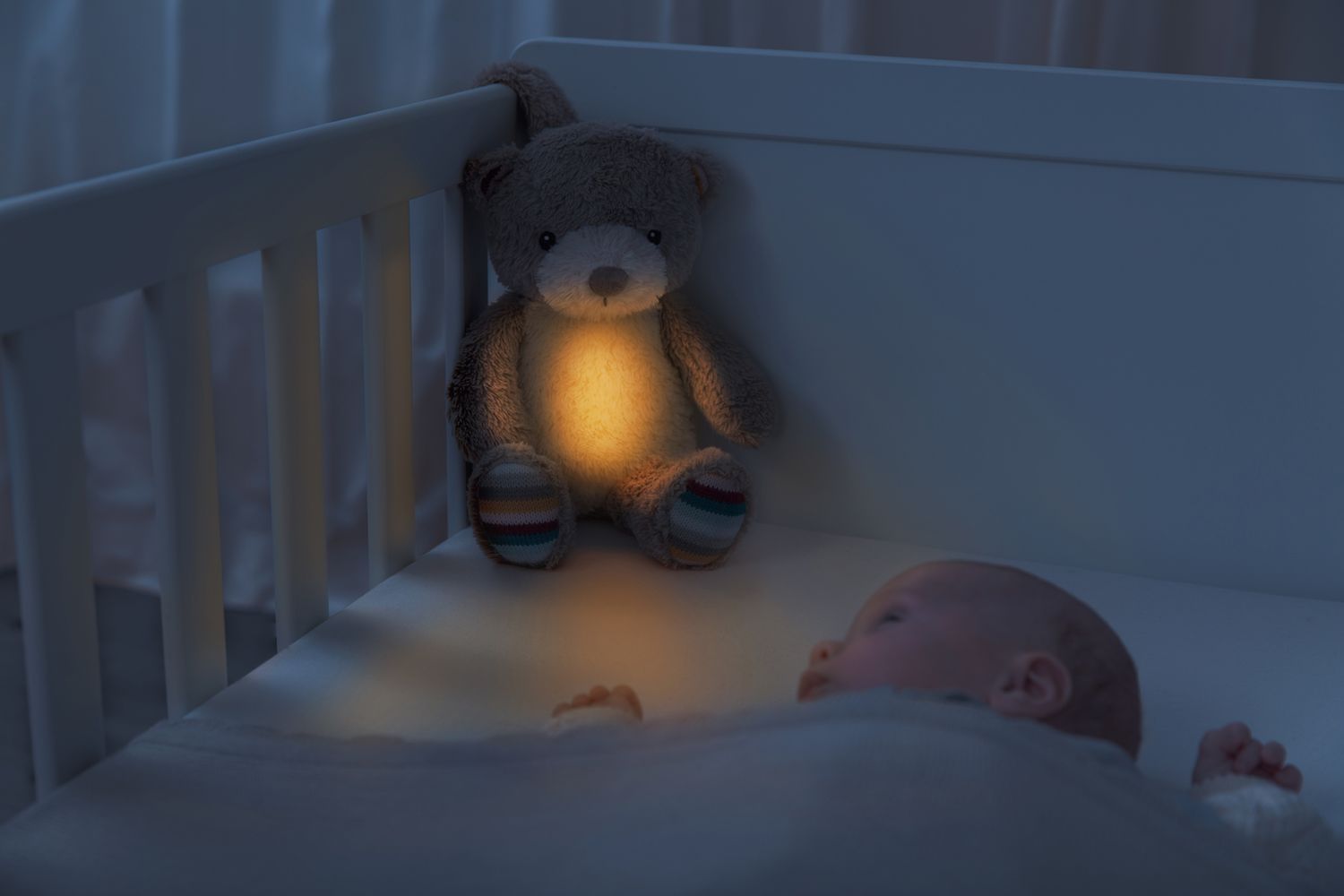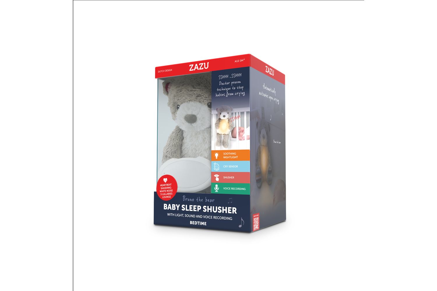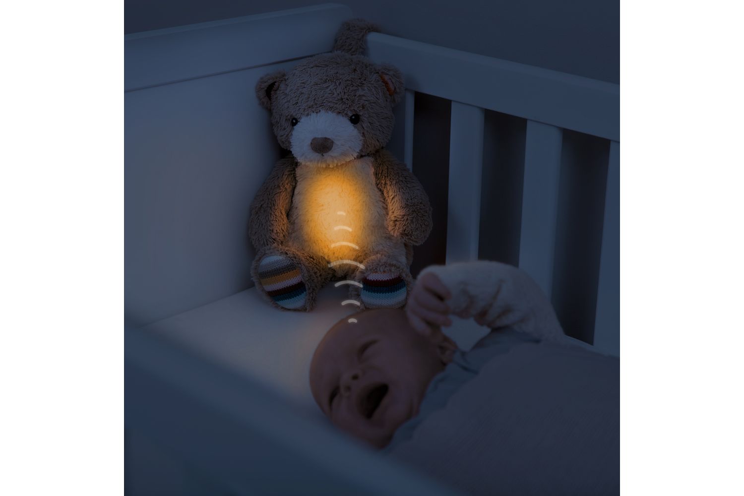 Additional feature: voice recording, to record your own song or story. Automatically shuts off after 20 minutes and the cry sensor can switch Bruno back on when your baby starts crying.