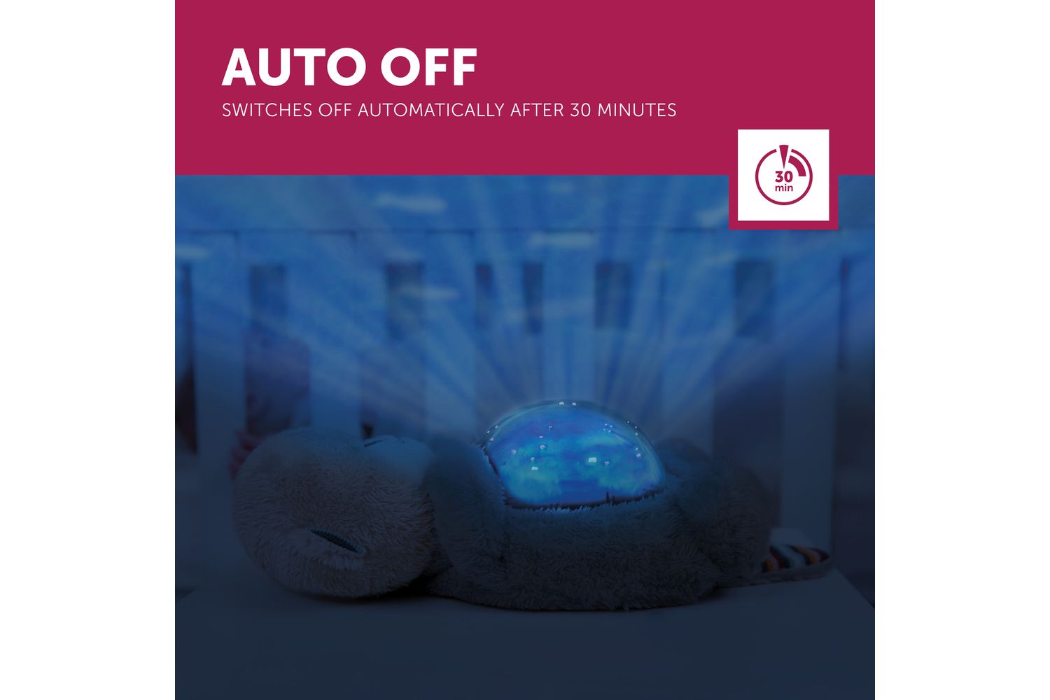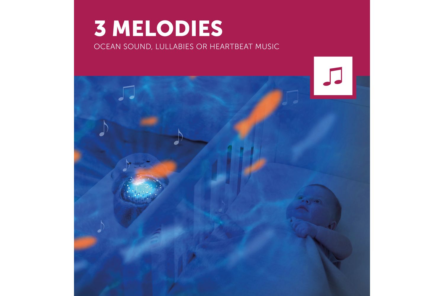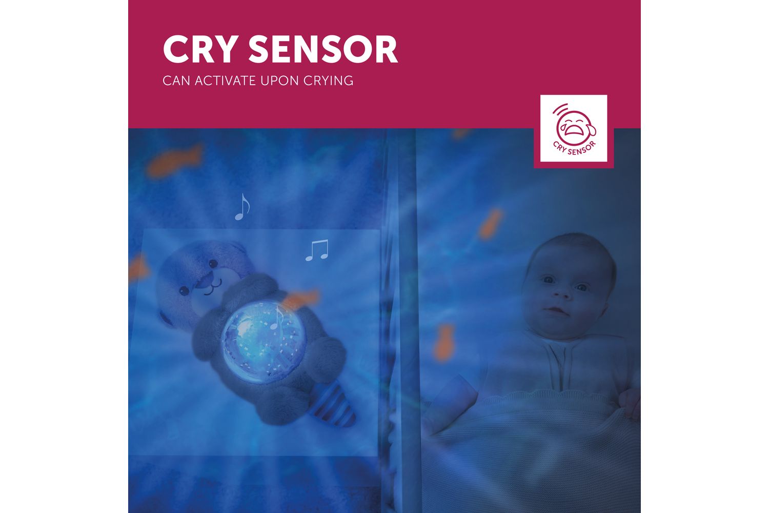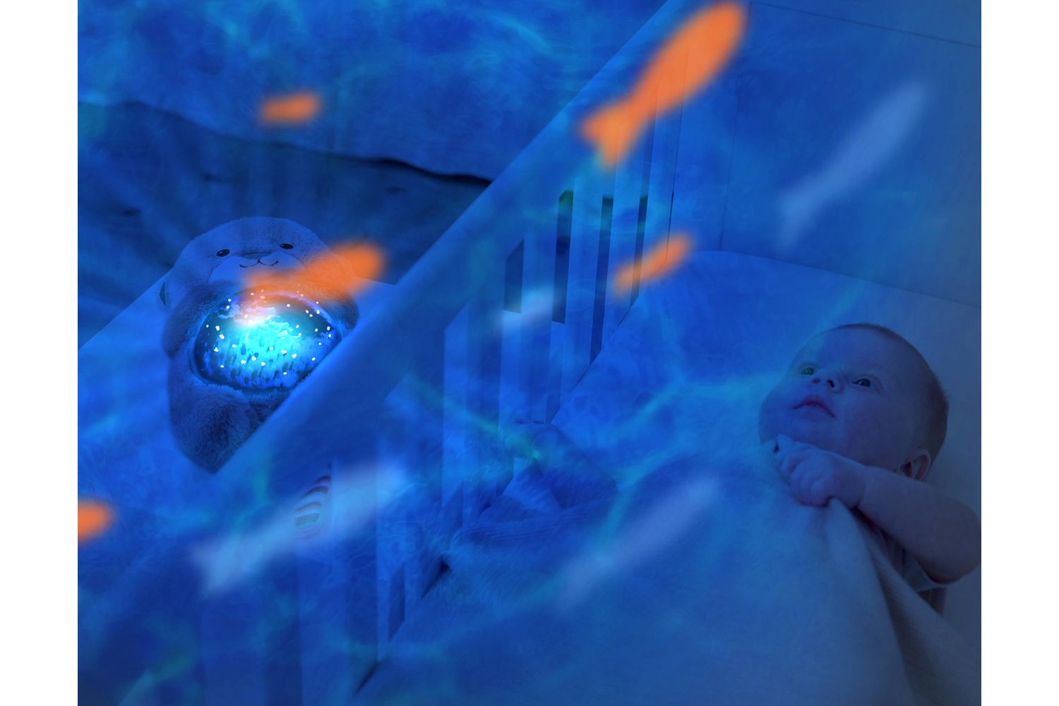Turn your little one’s room into a magical underwater world, with moving waves and fish swimming around the room, while listening to relaxing ocean sounds. Helps your little one to fall asleep by lowering the animation projected in three stages. Cody & Otto automatically shut off after 30 minutes, meaning you don't have to risk waking your child up to go in and put it off and also has a cry sensor, meaning it will re-activate to help soothe your child back to a peaceful slumber. Cody & Otto projects calming waves with a school of orange fish swimming around the room.