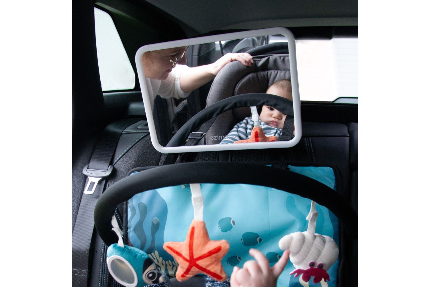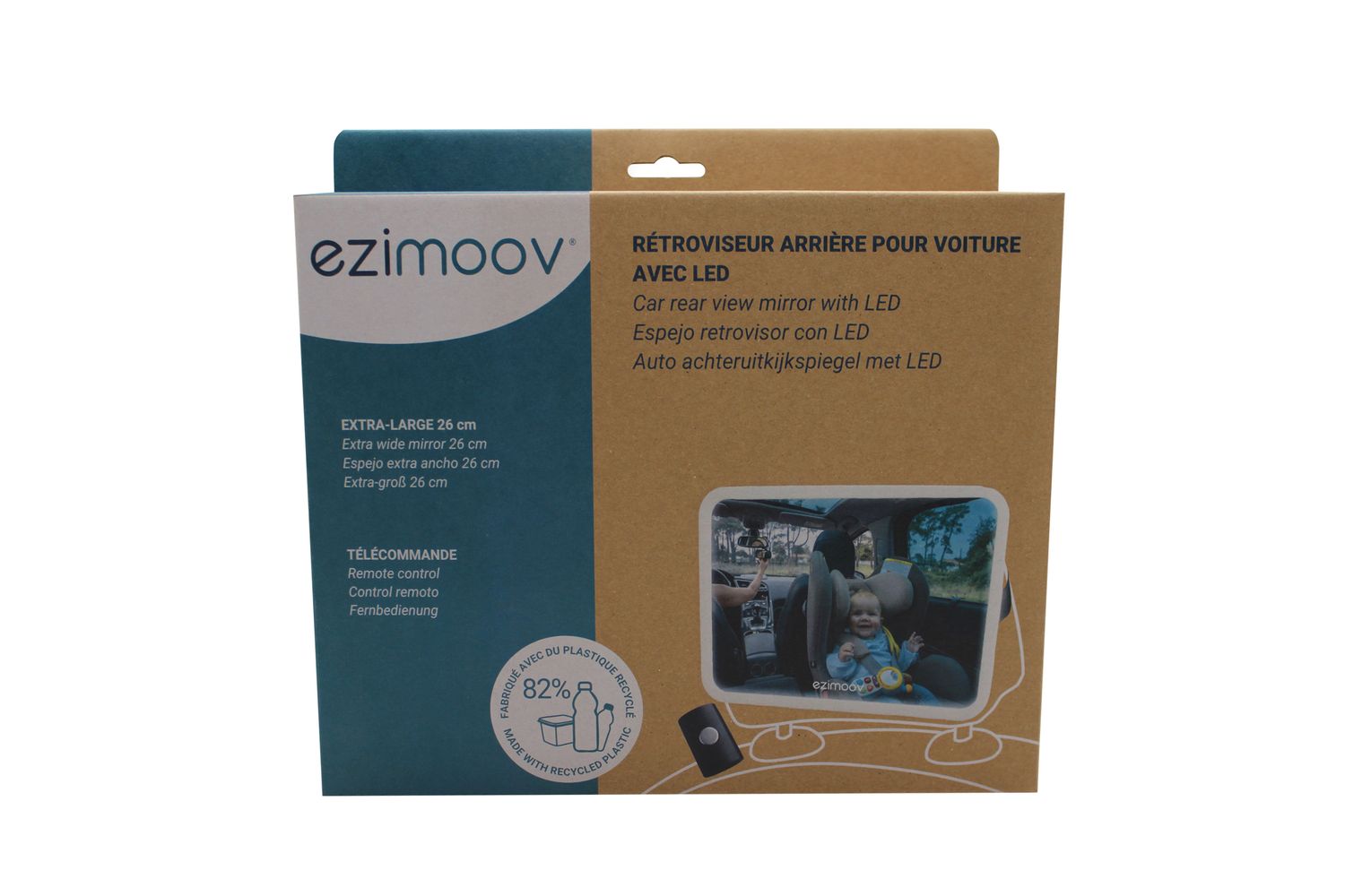 Baby Car Mirror with LED – Safe and Convenient Monitoring The Baby Car Mirror with LED Light ensures clear visibility of your child in the back seat, even in low light or at night. With soft, non-glare LED lighting, it provides optimal visibility without disturbing your baby’s comfort. Easy to install on any headrest, this mirror includes a remote control for effortless light adjustment while driving. Made from 82% recycled plastic, it’s both eco-friendly and safe. Enhance your driving safety and keep an eye on your child with this practical, user-friendly accessory.