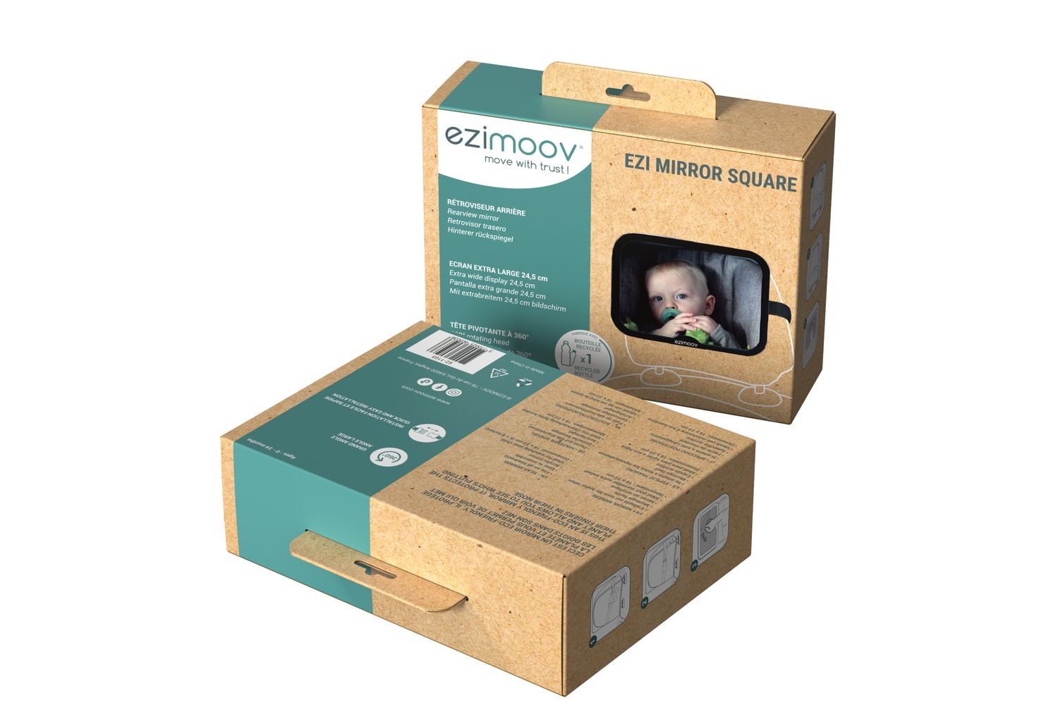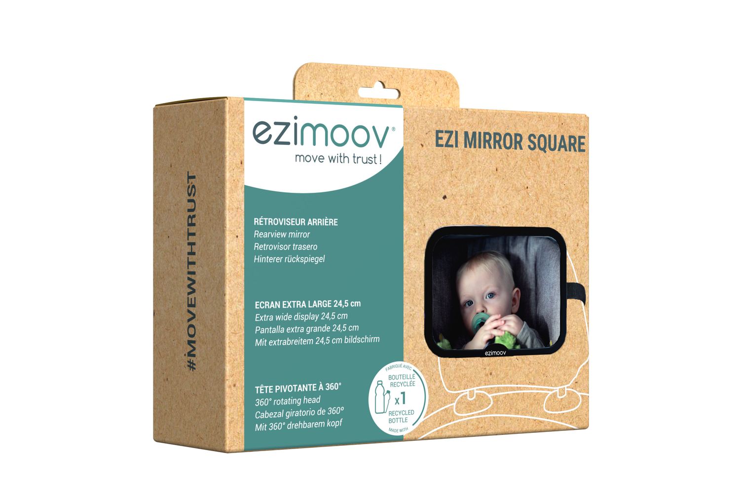 Square rear car seat mirror for safe and convenient monitoring on the road.The square rear car seat mirror from Ezimoov is 360-degree adjustable and is a must-have accessory for safe and stress-free travel with your newborn. This large, shatterproof mirror is designed to give you a clear and wide view of your baby while driving, ensuring piece of mind throughout the journey.