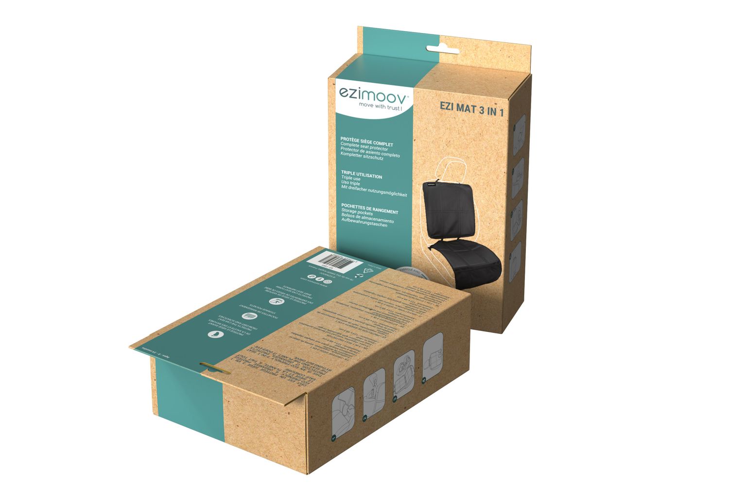 EZI MAT 3 IN 1 is a rear seat organizer, a front seat back protector and also a rear seat protector.In seat organizer mode: organize and store everything your child needs during the trip. Your little one will have everything they need right at their fingertips.