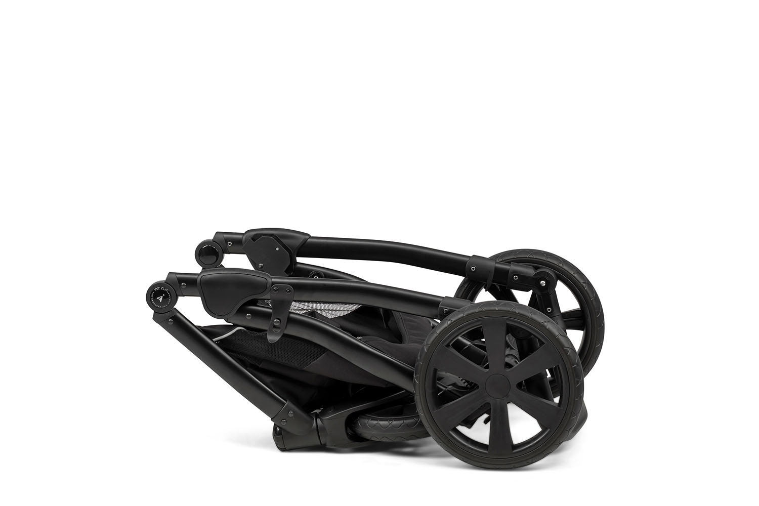All-around safe chassis folding system with quick release wheels for more compactness. Can be folded with or without seat unit attached.