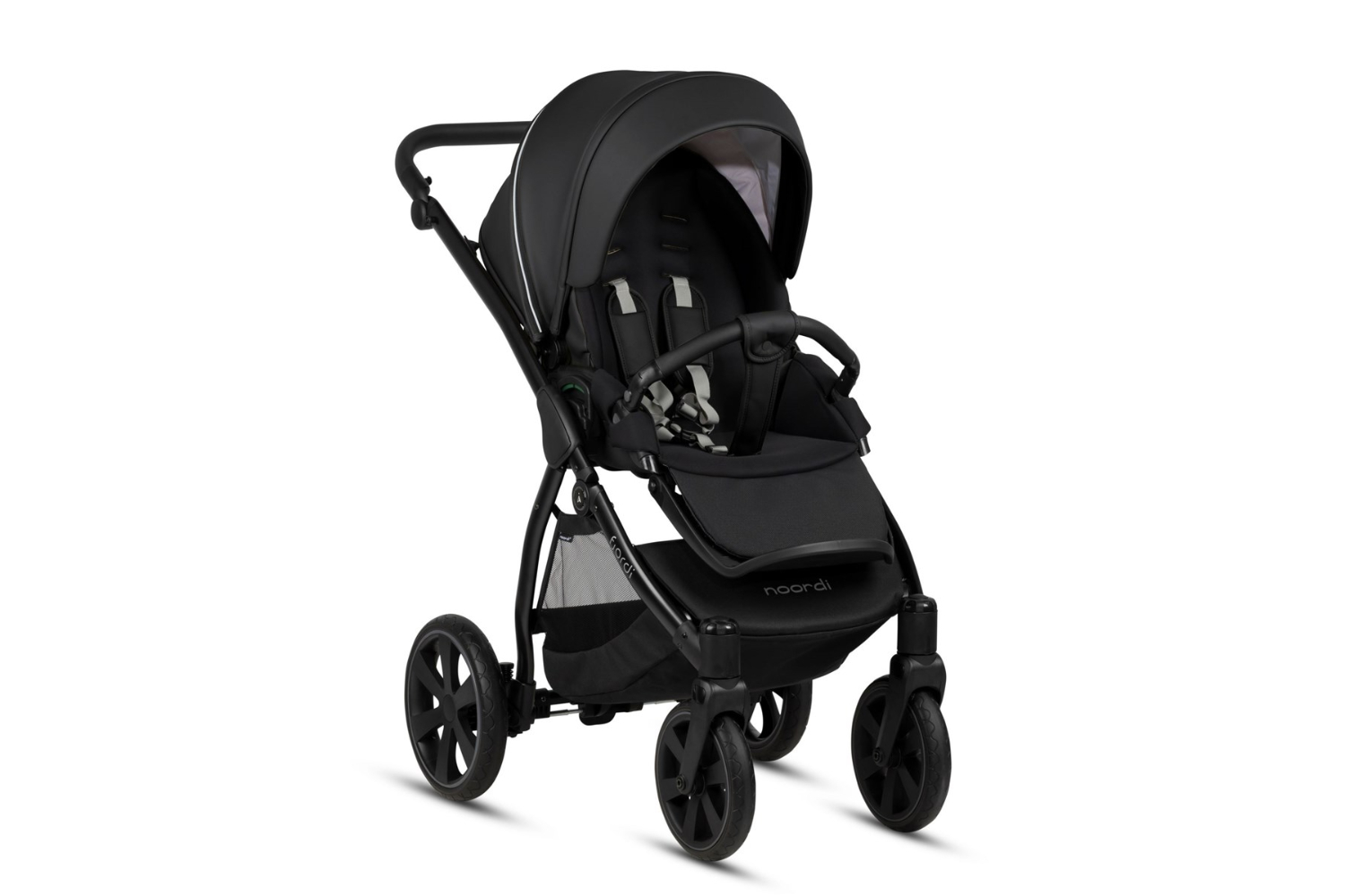 Featuring the ultra-light ThermoCot carrycot, a manoeuvrable chassis with an adjustable rear shock absorption system, and 2nd gen Real Gel wheels, the Noordi Fjordi leather version redefines smooth and stylish travel. The integrated mosquito net, open shopping bag, and other innovative features enhance its functionality, making it an excellent choice for active families who seek both luxury and practicality. Complementing this luxurious pram is a fashionable eco-leather backpack changing bag, perfectly coordinating with the pram's elegant design.