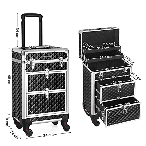 With such a large capacity, this train case will easily organize all your cosmetics in one place for both makeup beginners and professionals. Unique red water cube look adds a touch of elegance. With a size of 34 x 27 x 57 cm, it is ideal for beauty lovers