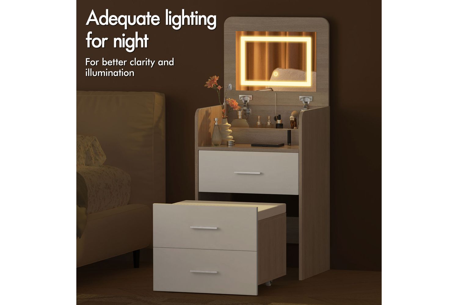 Transform Your Bedroom With The Alfordson Elegant Vanity Desk – Illuminated Mirror, Oak Finish
